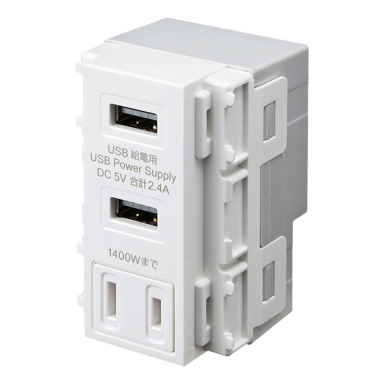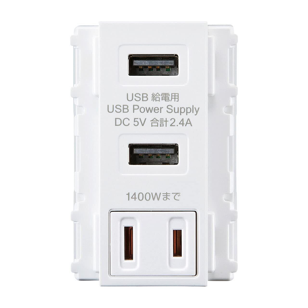 5V 2.4A高出力急速充電が可能な2ポート壁埋め込み型USBコンセントです。