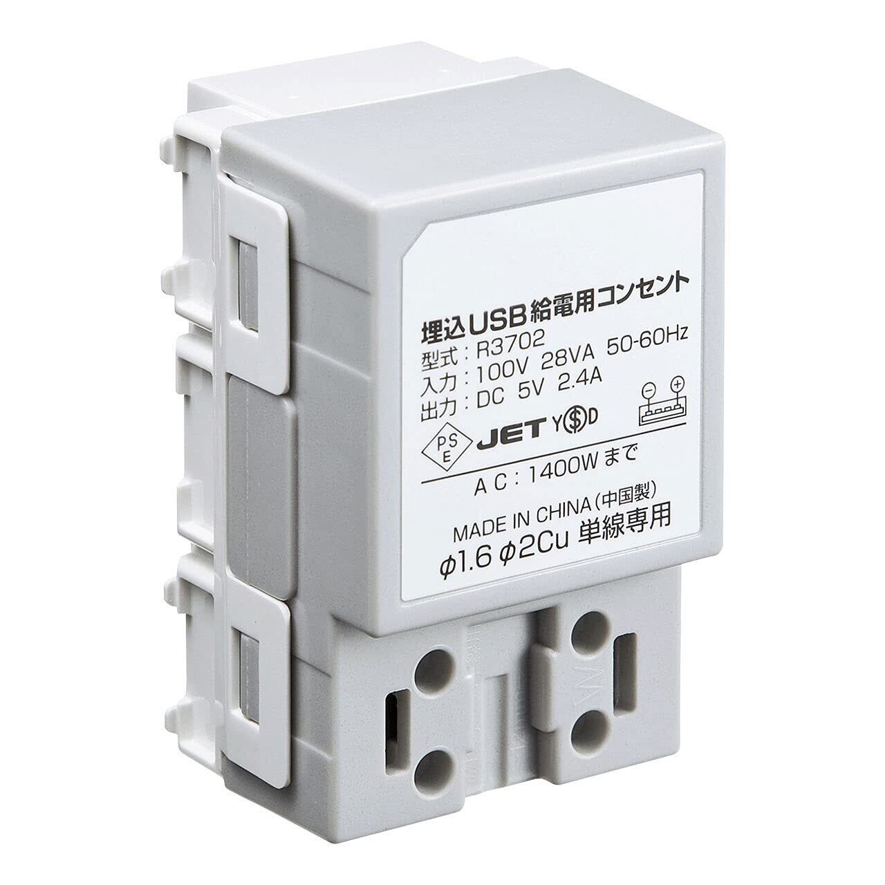 5V 2.4A高出力急速充電が可能な2ポート壁埋め込み型USBコンセントです。自動判別機能搭載、接続された機器(スマートフォン、タブレット)を瞬時に自動判別し急速充電が可能です。ACコンセントが1個付いており、個別に電源が取ることができます。又、既設のダブル、トリプルコンセントからの置き換えが簡単に行えます。