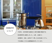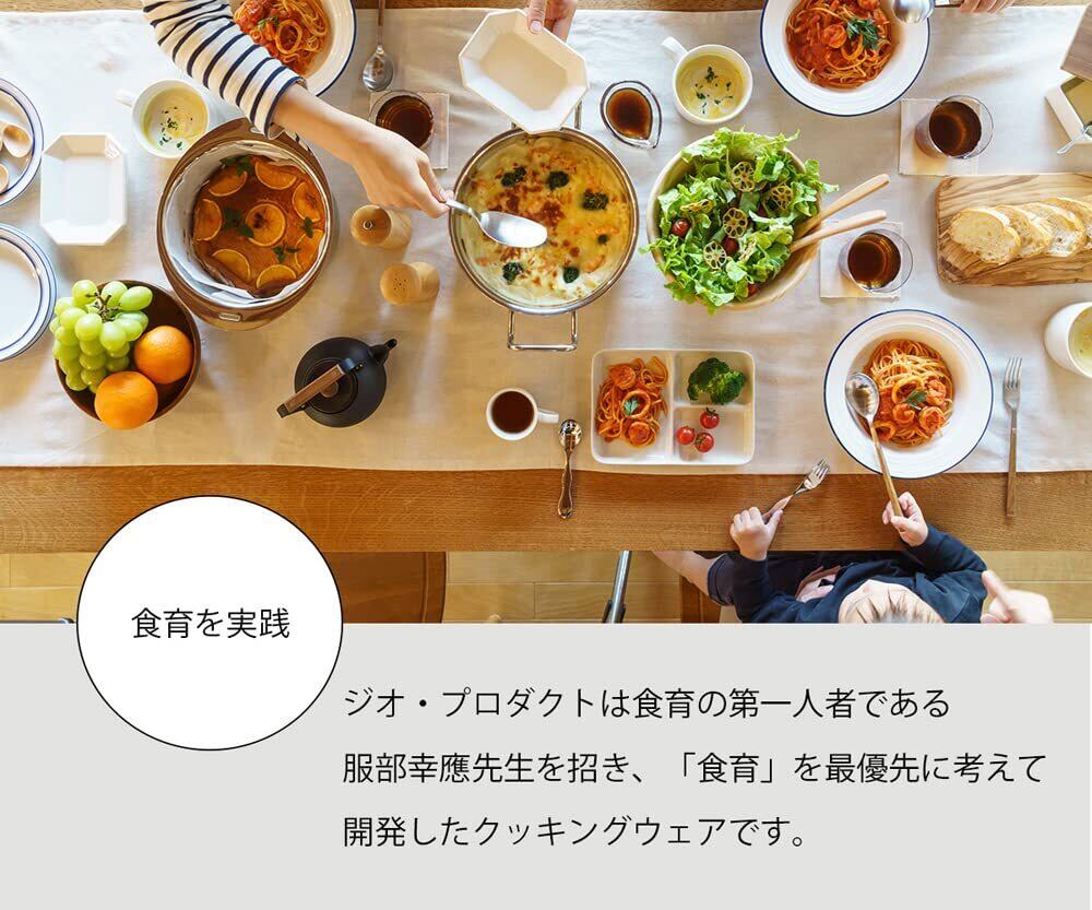 1960年の創立以来、確かな品質の金属ハウスウエアを作り続けてきた宮崎製作所が、1996年に立ち上げたのが「ジオ・プロダクト」シリーズ。「食」の達人としてテレビなどでもお馴染みの服部幸應氏をスーパーバイザーに迎えて開発された一連の製品は、機能性はもちろん、手入れの簡単さと耐久性を重視したプロ仕様のアイテムとなっている。15年という期間の長さからも、出来映えへの自信が感じられる。