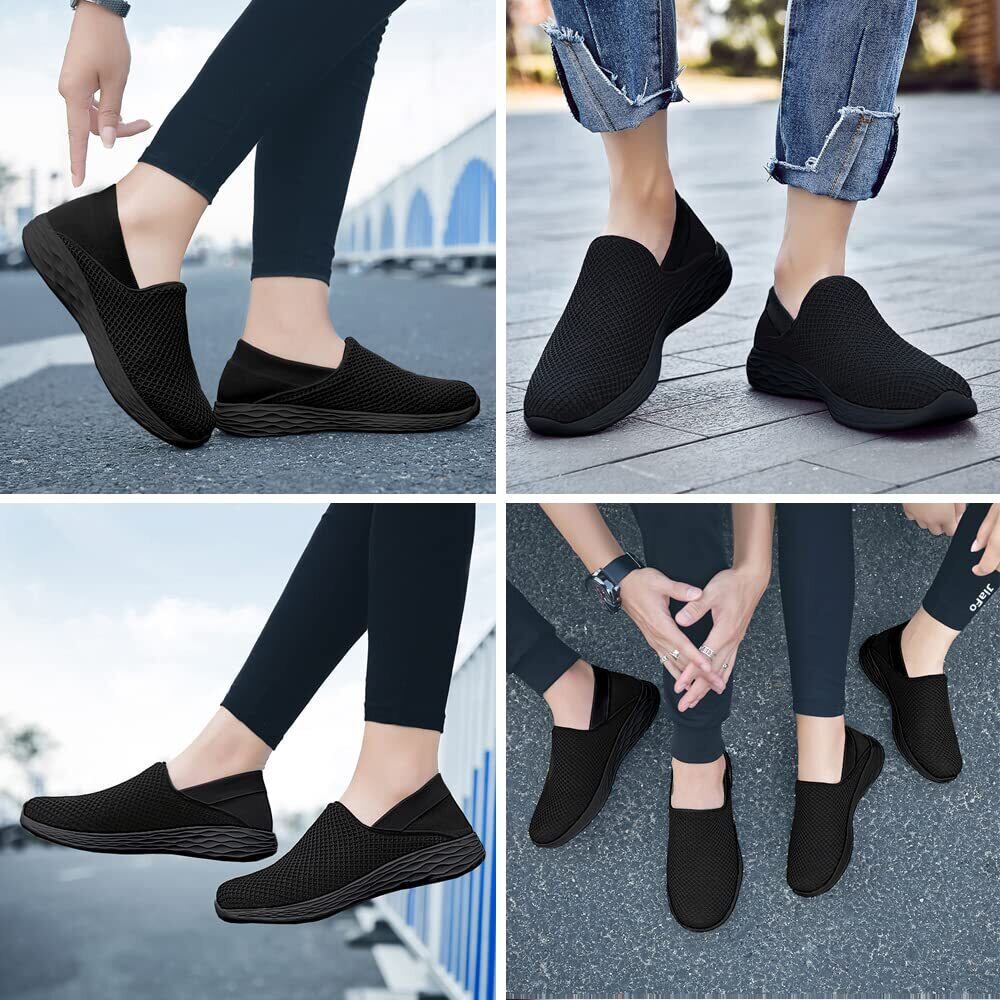 [JIAFO] 【かかとを踏める靴】スリッポン スニーカー レディース ナースシューズ 婦人靴 ウォーキングシューズ カジュアルシューズ スポーツシューズ デッキシューズ 幅広 大きいサイズ 黒 運動靴 超軽量 通気性22.5cm-26.0cm