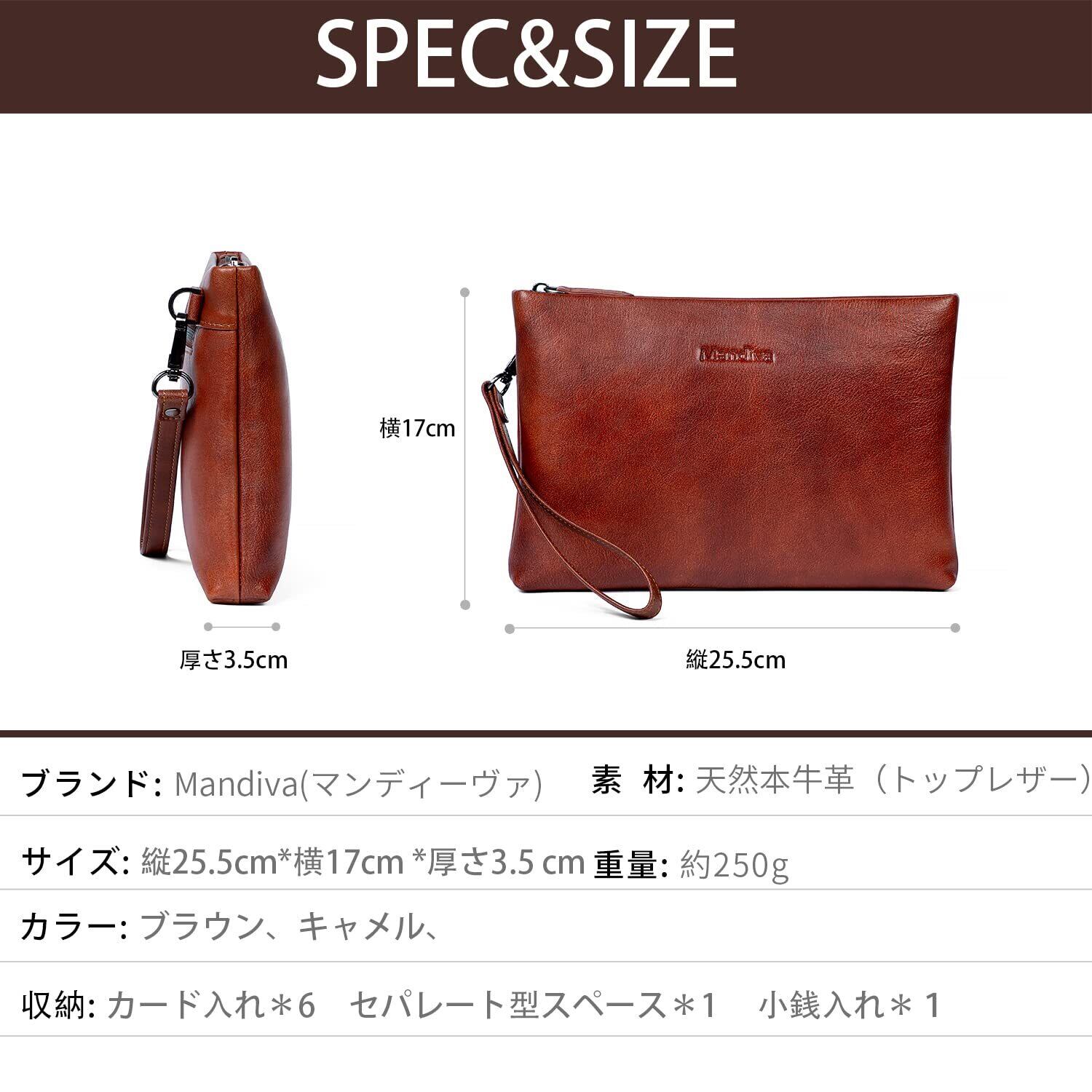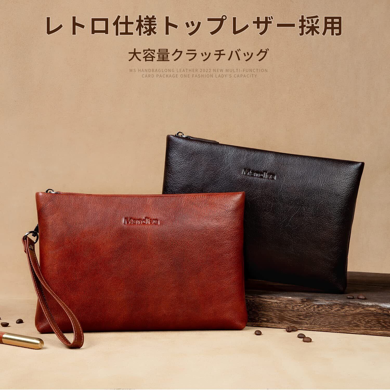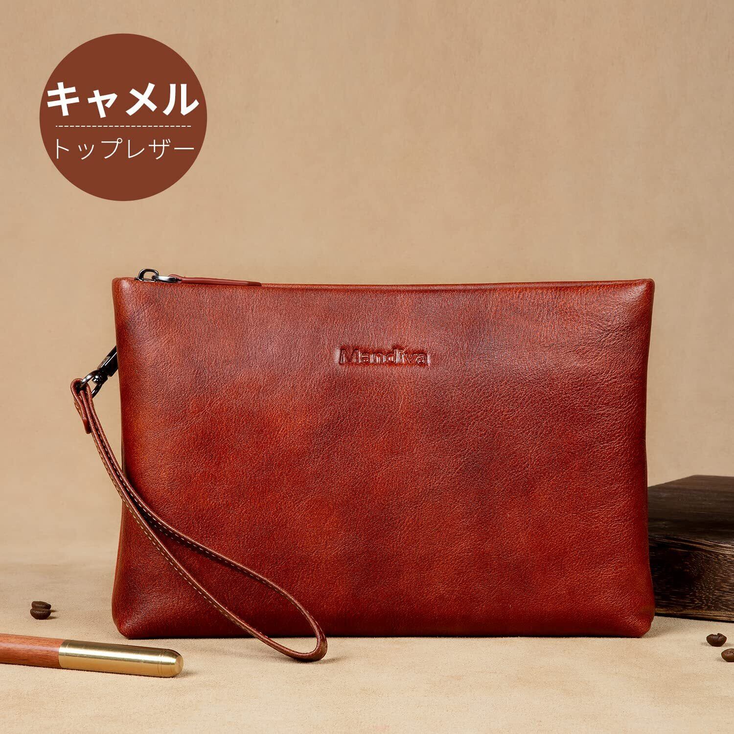 【在庫処分】[Mandiva]クラッチバッグ セカンドバッグ メンズ 結婚式 本革 ハンドバッグ 大容量 トップレザー (キャメル01)