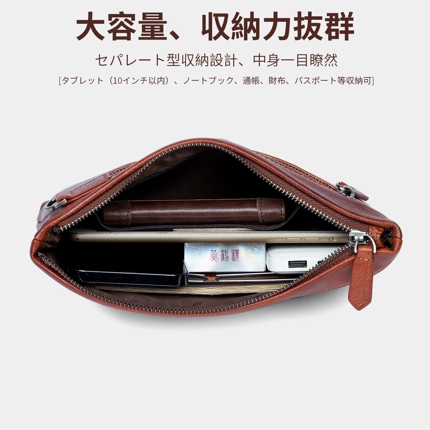 [Mandiva]クラッチバッグ セカンドバッグ メンズ 結婚式 本革 ハンドバッグ 大容量 トップレザー (キャメル01)
