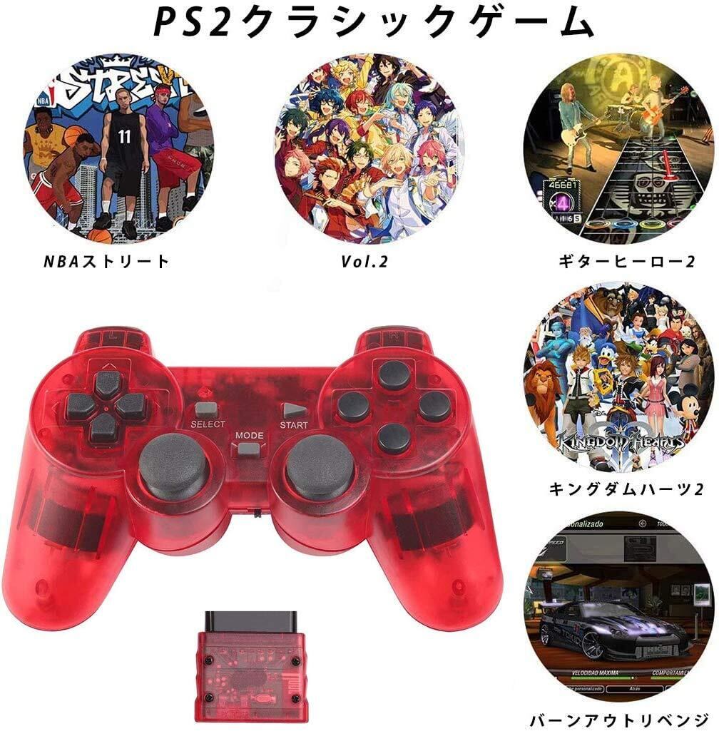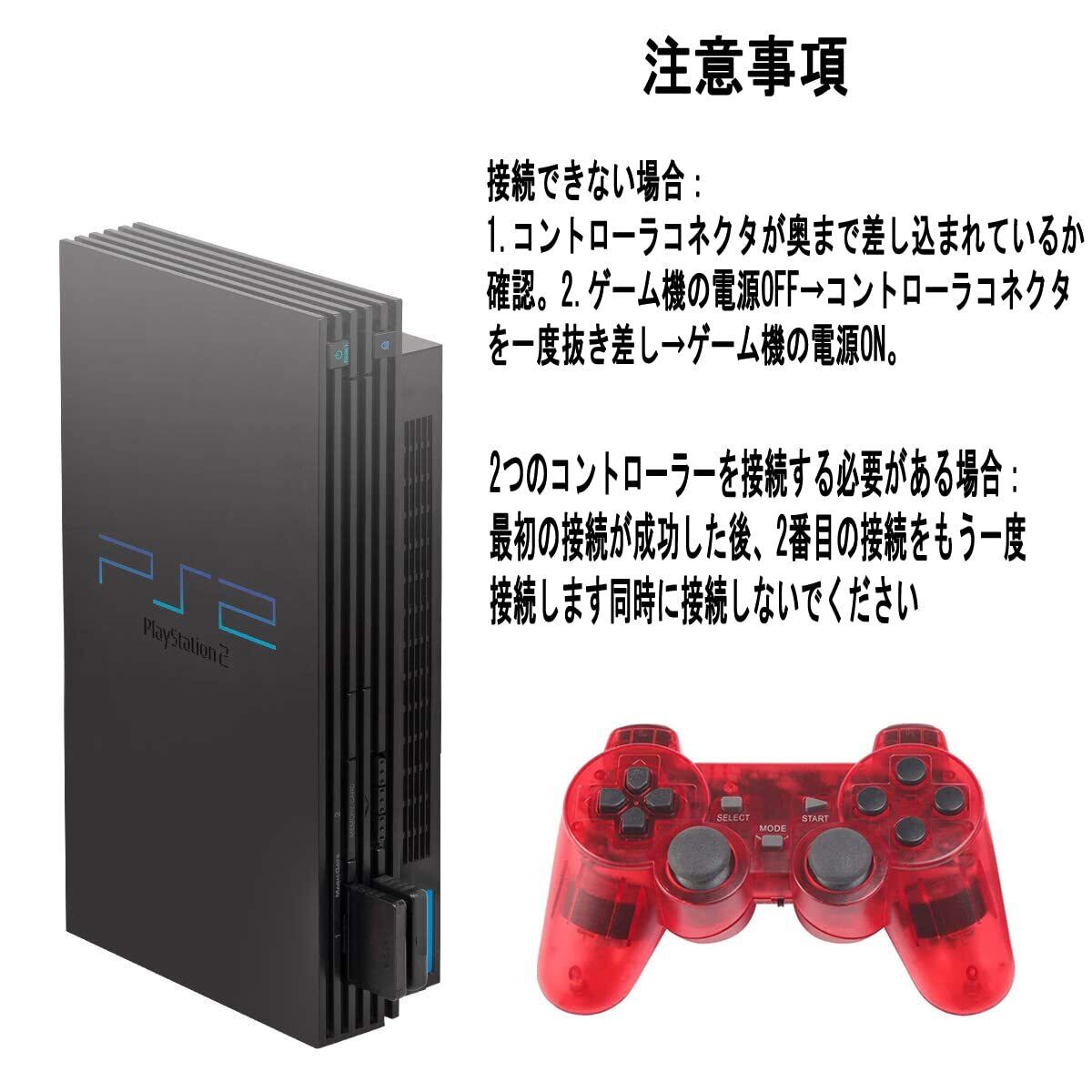 Fancyan PS2 用 ワイヤレスコントローラー DUAL SHOCK2 ゲームパット 互換対応 日本語説明書 (透明赤)