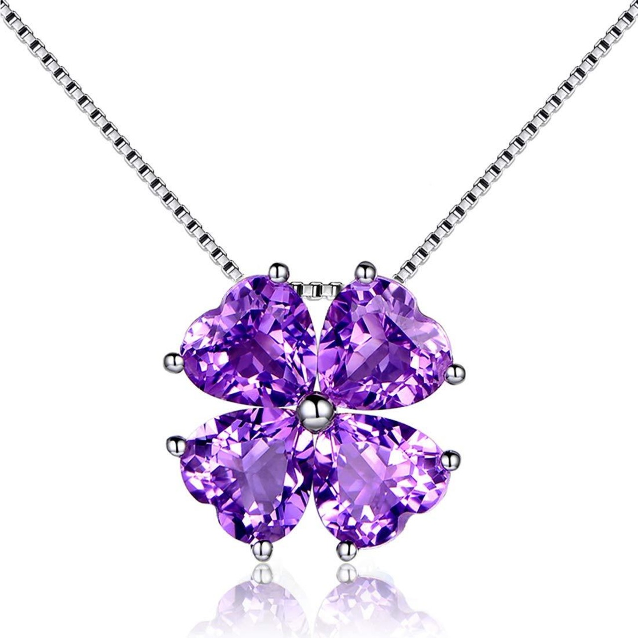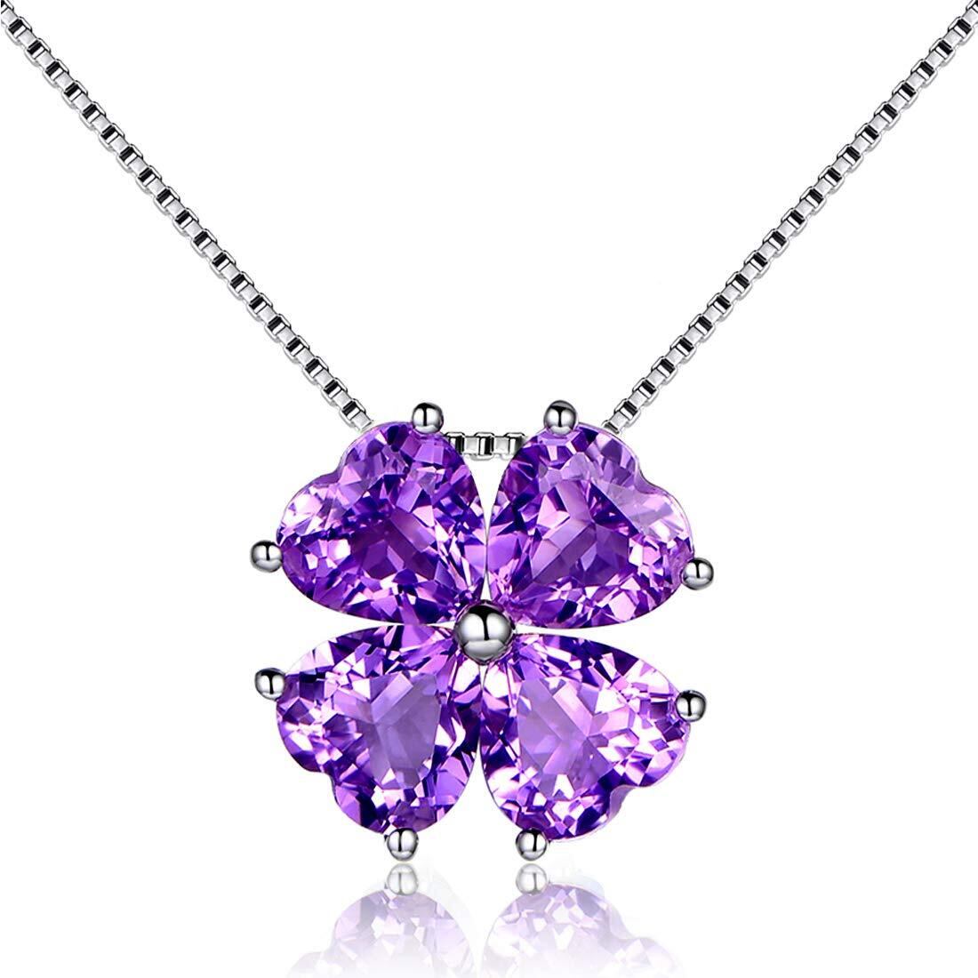 [JIANGXIN]ハート シルバー925 ネックレス レディース「 LUCKY 」四つ葉のクローバー 2月 誕生石 アメジスト金属アレルギー対応 ペンダント女性 誕生日 誕生石 上品 結婚式 女性 入学式 プレゼント