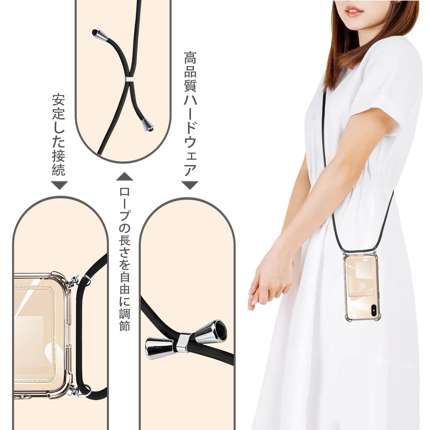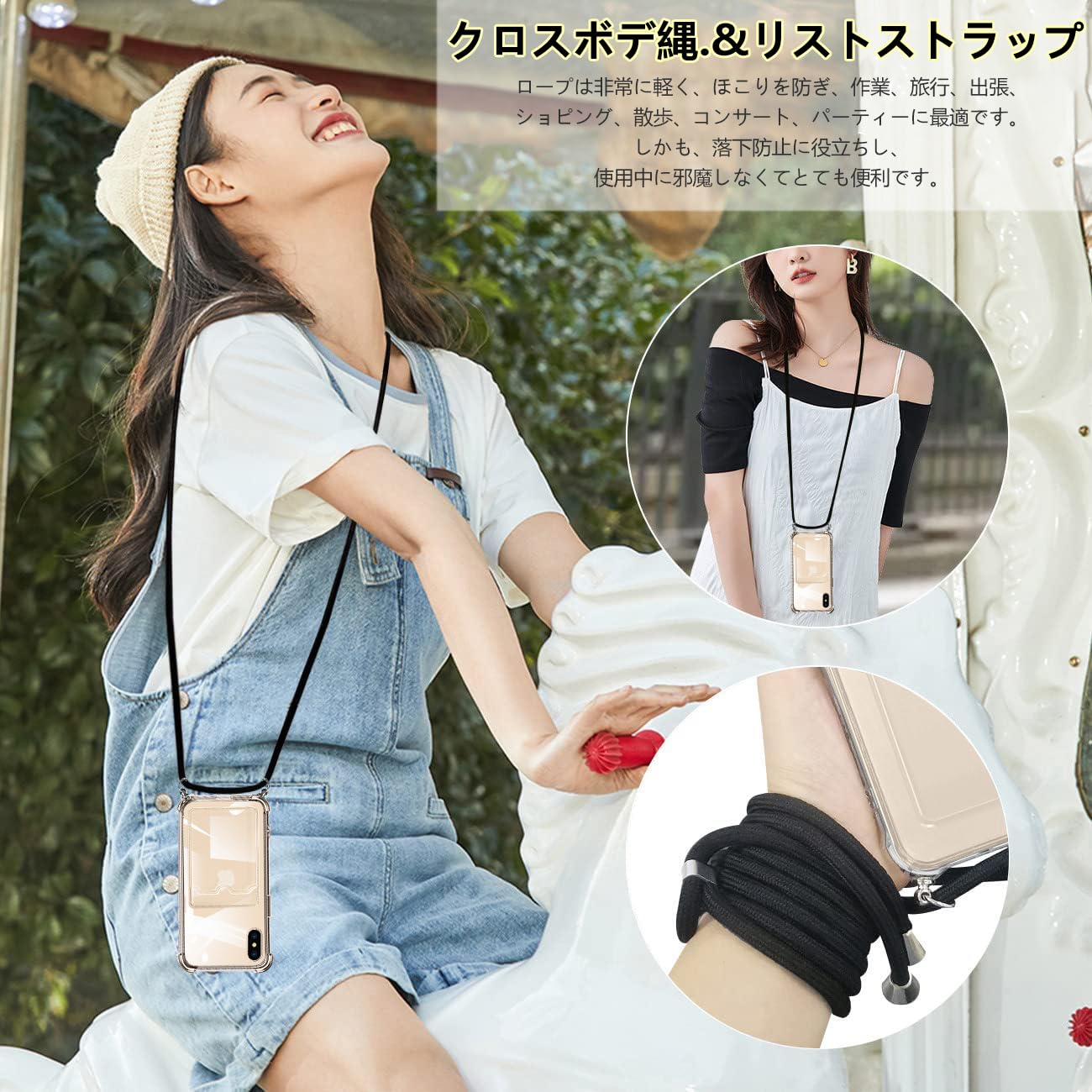 【多用途のストラップ】高品質なナイロン材質を採用して、拔群な丈夫性、高い耐久性と耐摩耗性があります。長さが簡単に調整できるタイプので、首掛けだけでなく、斜め掛けも可能です、携帯電話が紛失する恐れはなし。このアクセサリーはファッションだけでなく、通常のストラップよりも快適で実用的です。 作業、旅行、出張、ショピング、散歩、コンサート、パーティーに最適です。