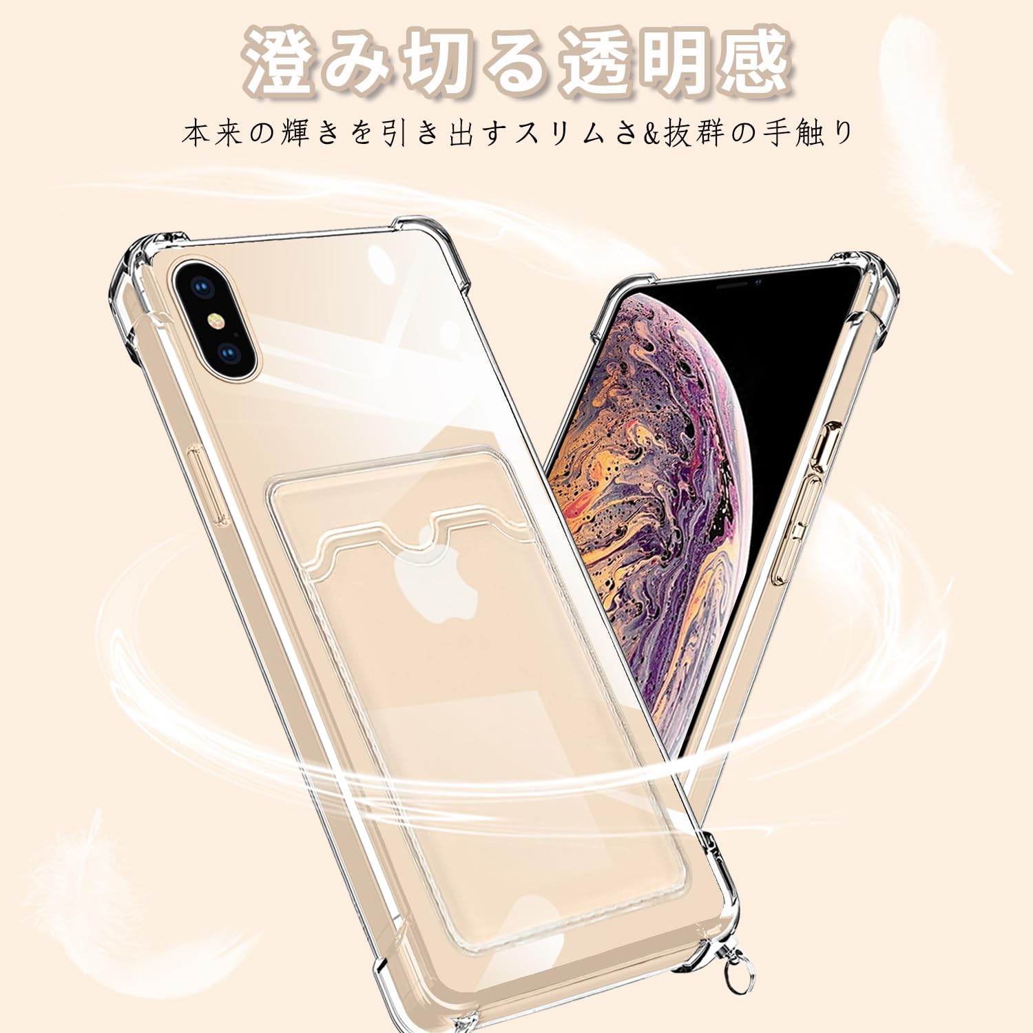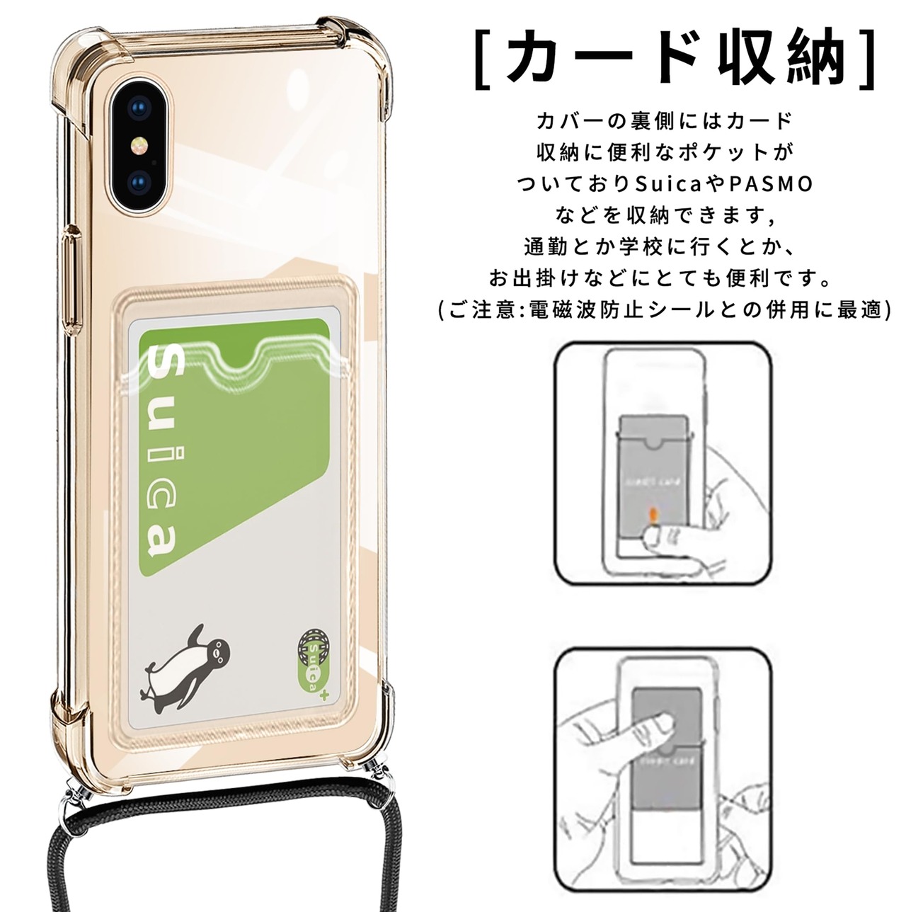 iPhone XS Max 用 ケース クリア ショルダー ストラップ付き iphonexs max カバー カード収納 アイフォンXSMax スマホケース 背面 財布型 ケース 肩掛け 首かけ 斜めがけ ショルダー ケース 縄掛け カバー 耐衝撃 透明 TPU 薄型 軽量 スマホケース 調節可能な 全面保護 落下防止 紛失防止 シリコン ケース(クリア)