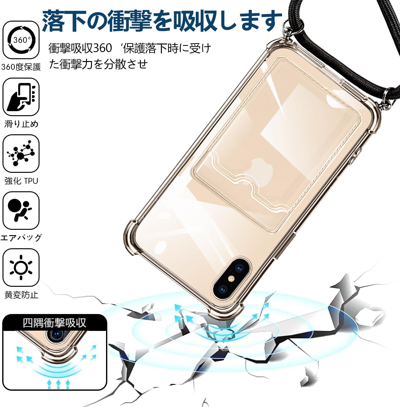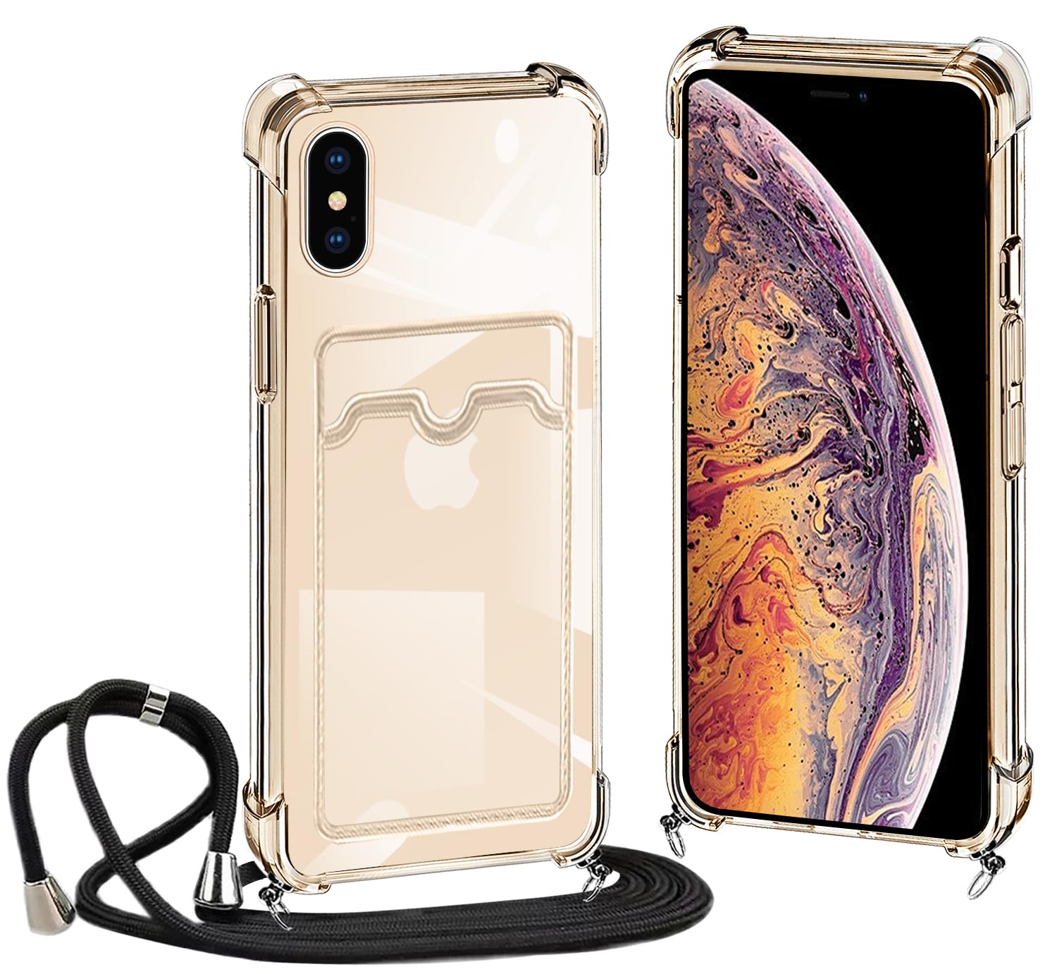 【2022最新】iPhone XS Max 用 ケース クリア ショルダー ストラップ付き iphonexs max カバー カード収納 アイフォンXSMax スマホケース 背面 財布型 ケース 肩掛け 首かけ 斜めがけ ショルダー ケース 縄掛け カバー 耐衝撃 透明 TPU 薄型 軽量 スマホケース 調節可能な 全面保護 落下防止 紛失防止 シリコン ケース(クリア)