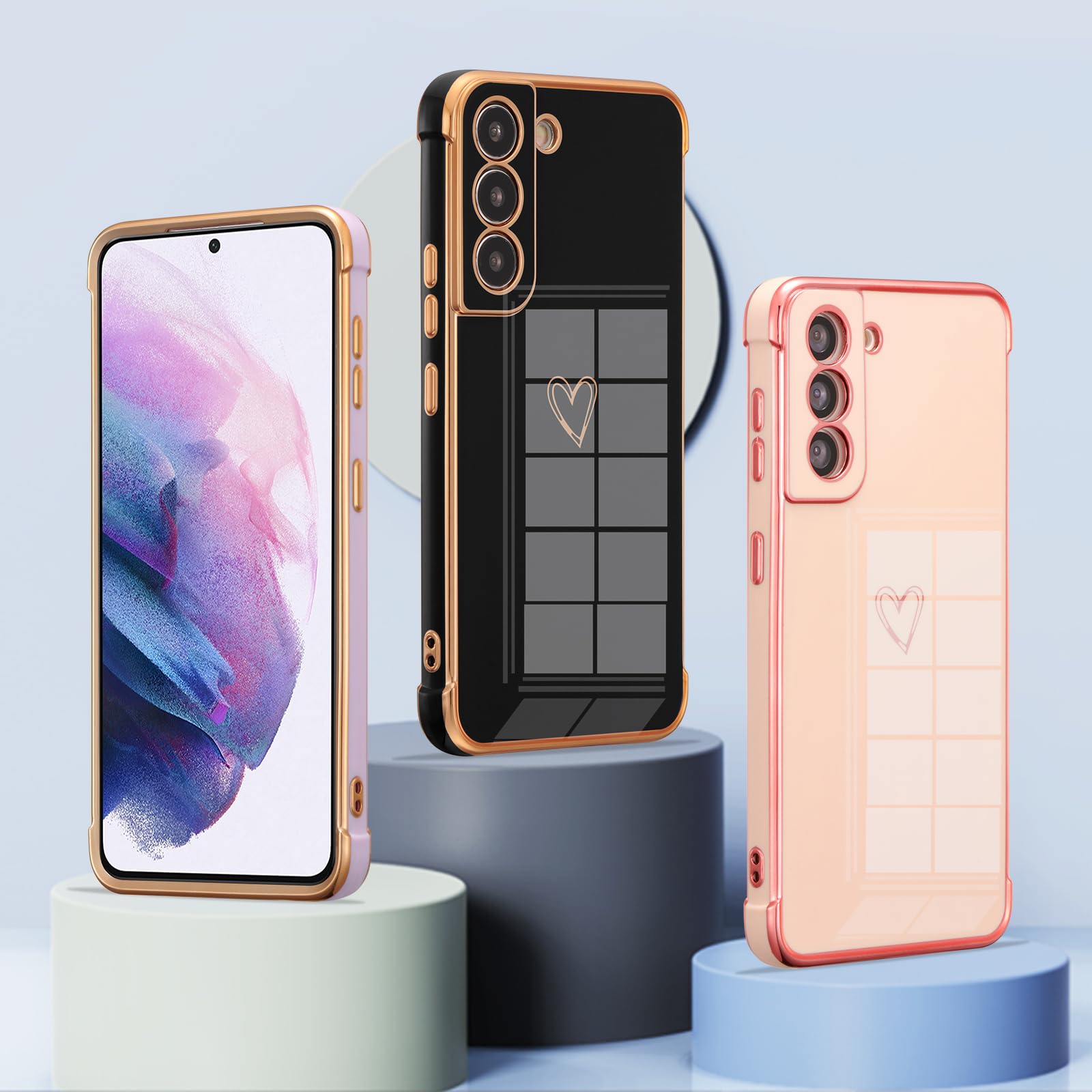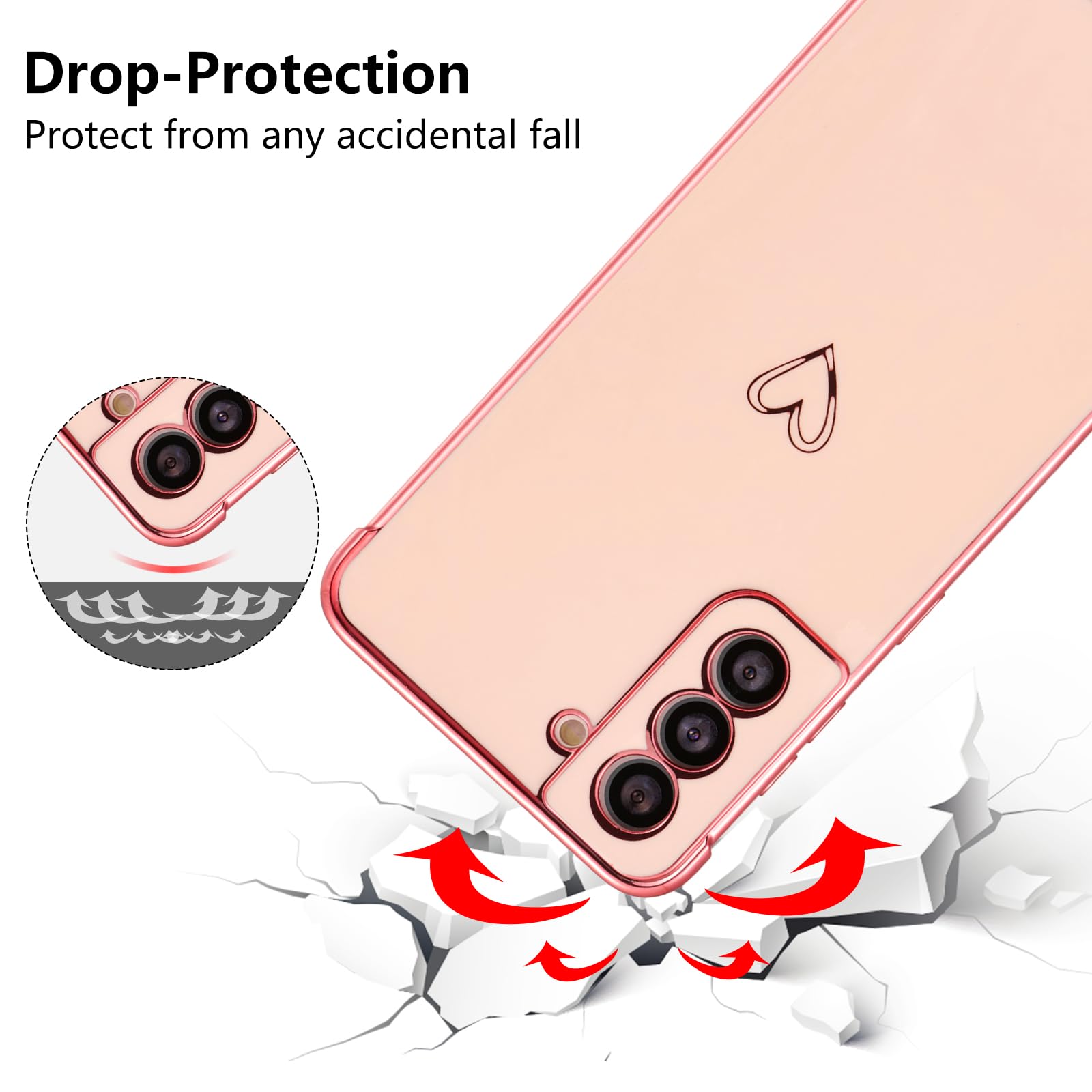 Samsung Galaxy S21に対応、購入前に機種をご確認ください。柔らかく柔軟なtpu素材を使用し、エッジとカメラエッジの周りにメッキ技術を使用しています。キュートなラブハートパターンとメッキエッジは、あなたの携帯電話のファッションとスタイリッシュにします。