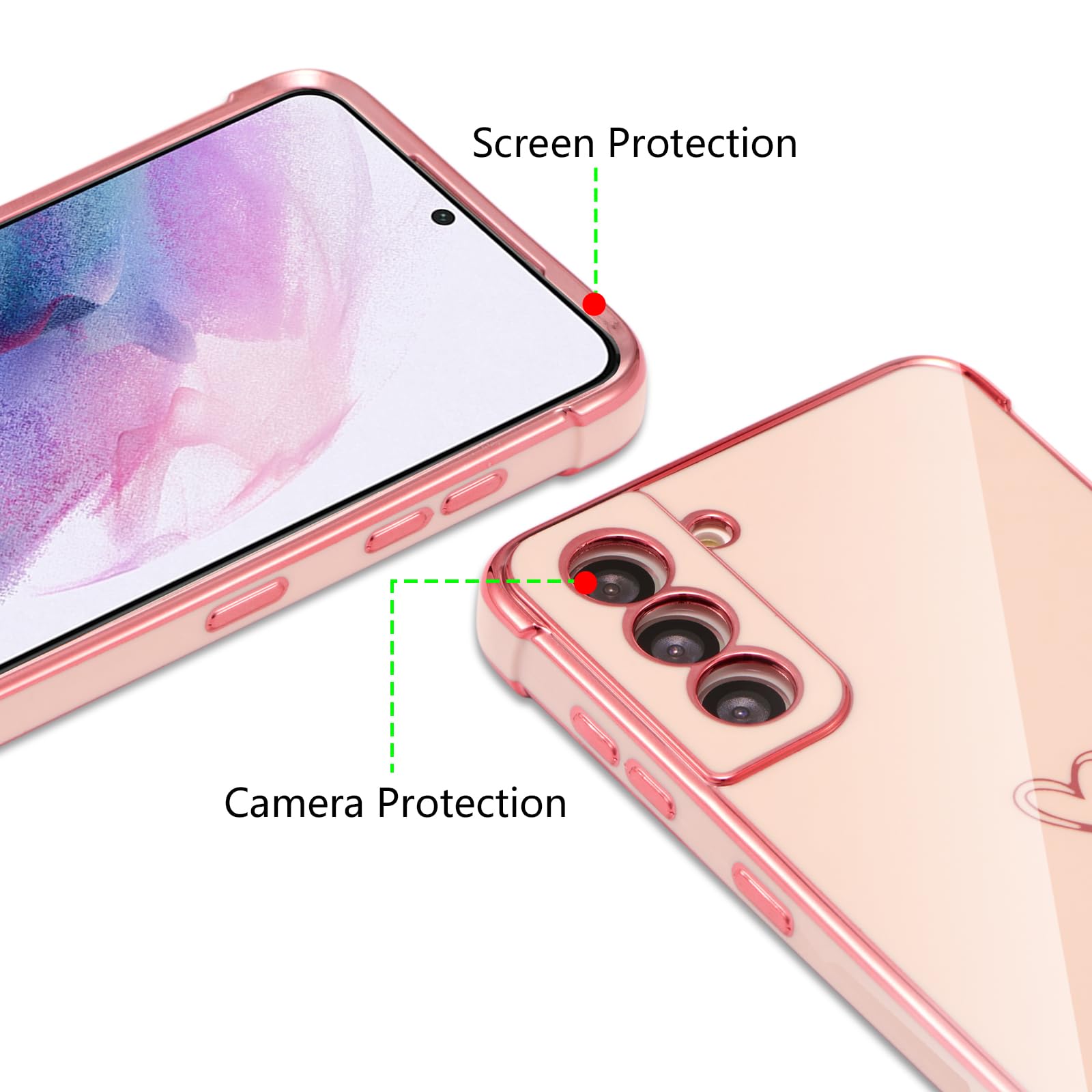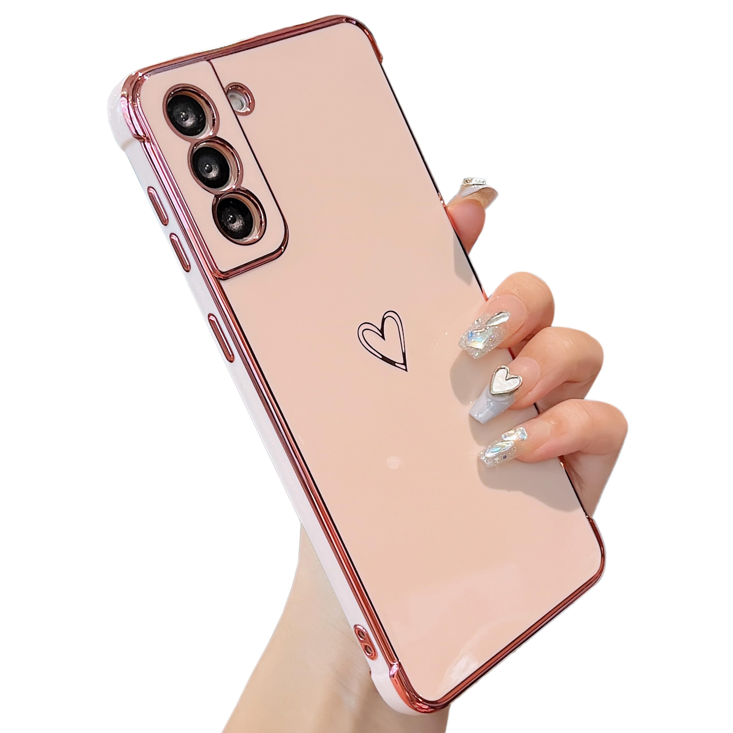 ZTOFERA Samsung Galaxy S21 用 ハートケース 柔軟な TPU シリコン メッキ加工 ソフト 軽量 耐衝撃 おしゃれ 韓国 可愛い サムスン ギャラクシー S21 ケース 携帯カバー 女性 心パターン スマホケース ワイヤレス充電対応 (ピンク)