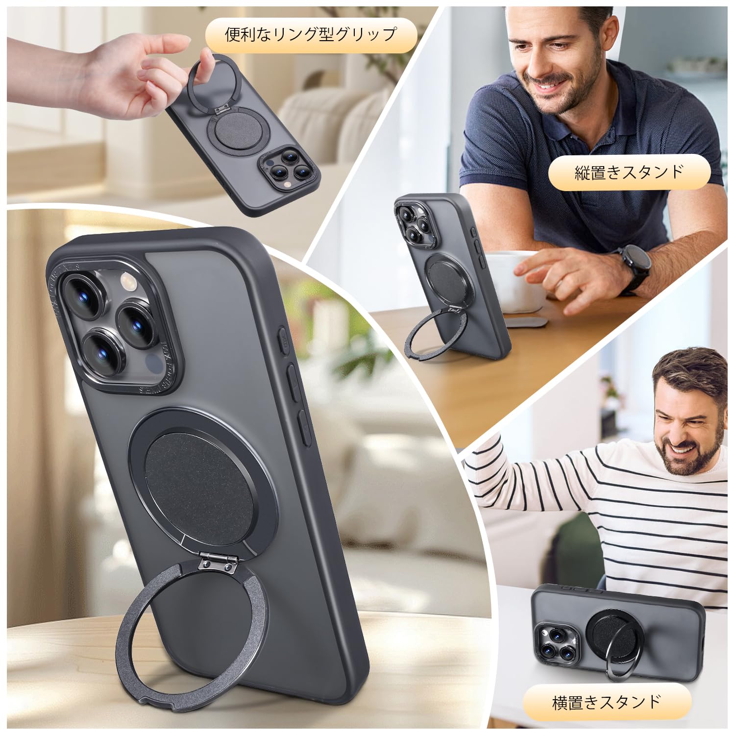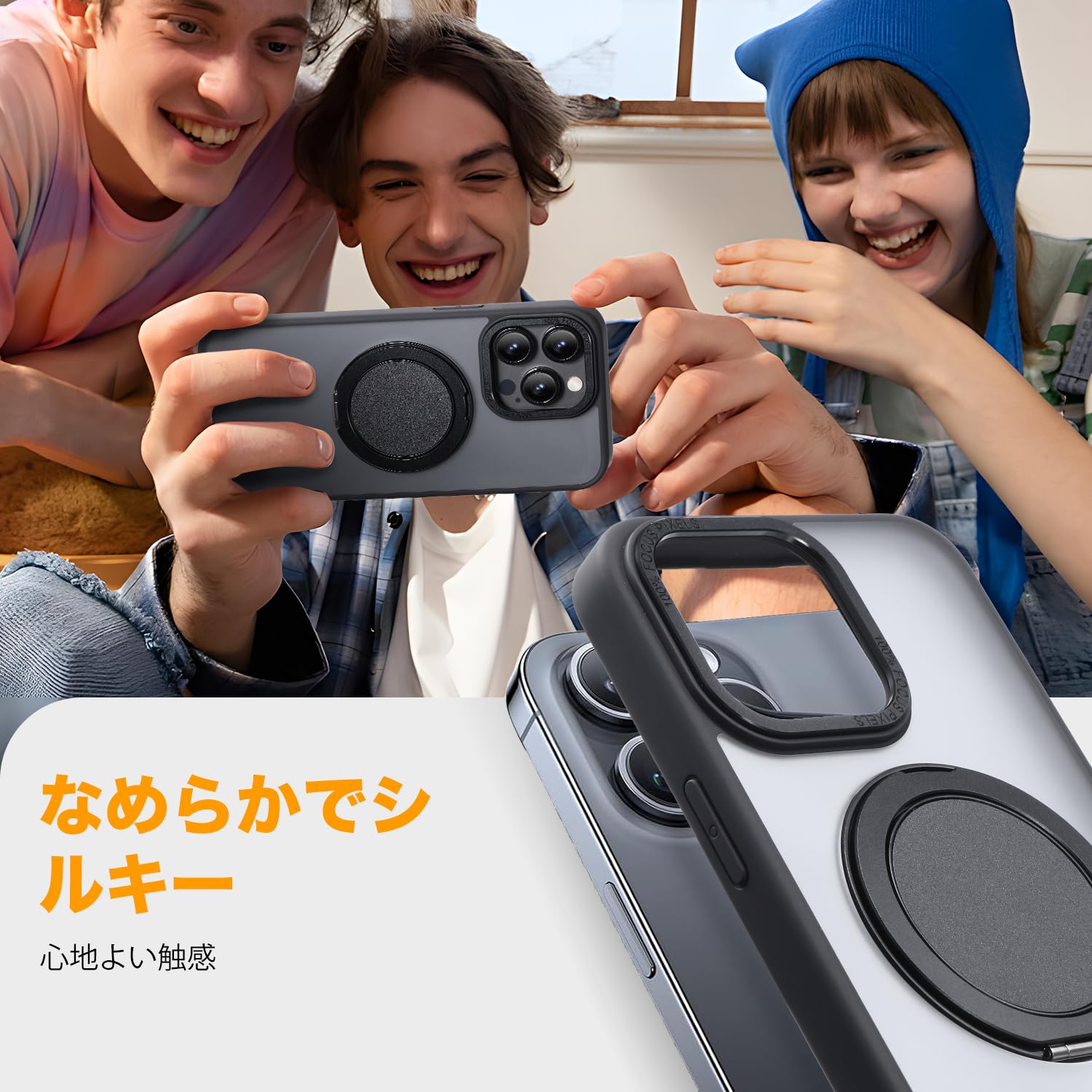 【捻れば最適な角度】精密な機械工学により、捻るたびに機械式腕時計の巻き上げのようなカチッとした音と感触を生む。角度安定。仕事中は情報確認やビデオ会議、通勤時の情報チェック可。リングとしても使用可。"プライベート"は息抜きではなく、視野を変える時。映像やゲーム、写真やSNSチェック、家族との連絡など、多彩なシーンで活躍!(iphone 13 Pro ケース)