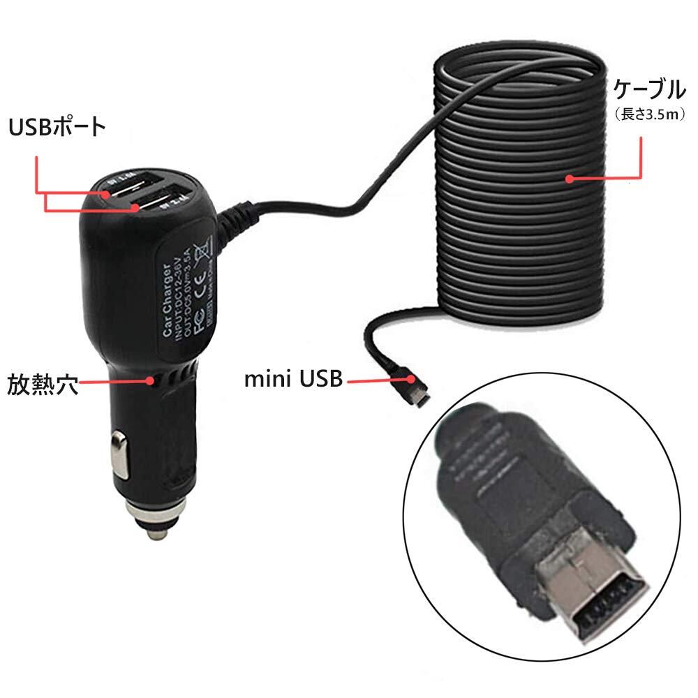 入力:12V~36V 出力:5V/3.5A USB出力:5V/2.4A 5V/1A ケーブの長さ:やく3.5M。