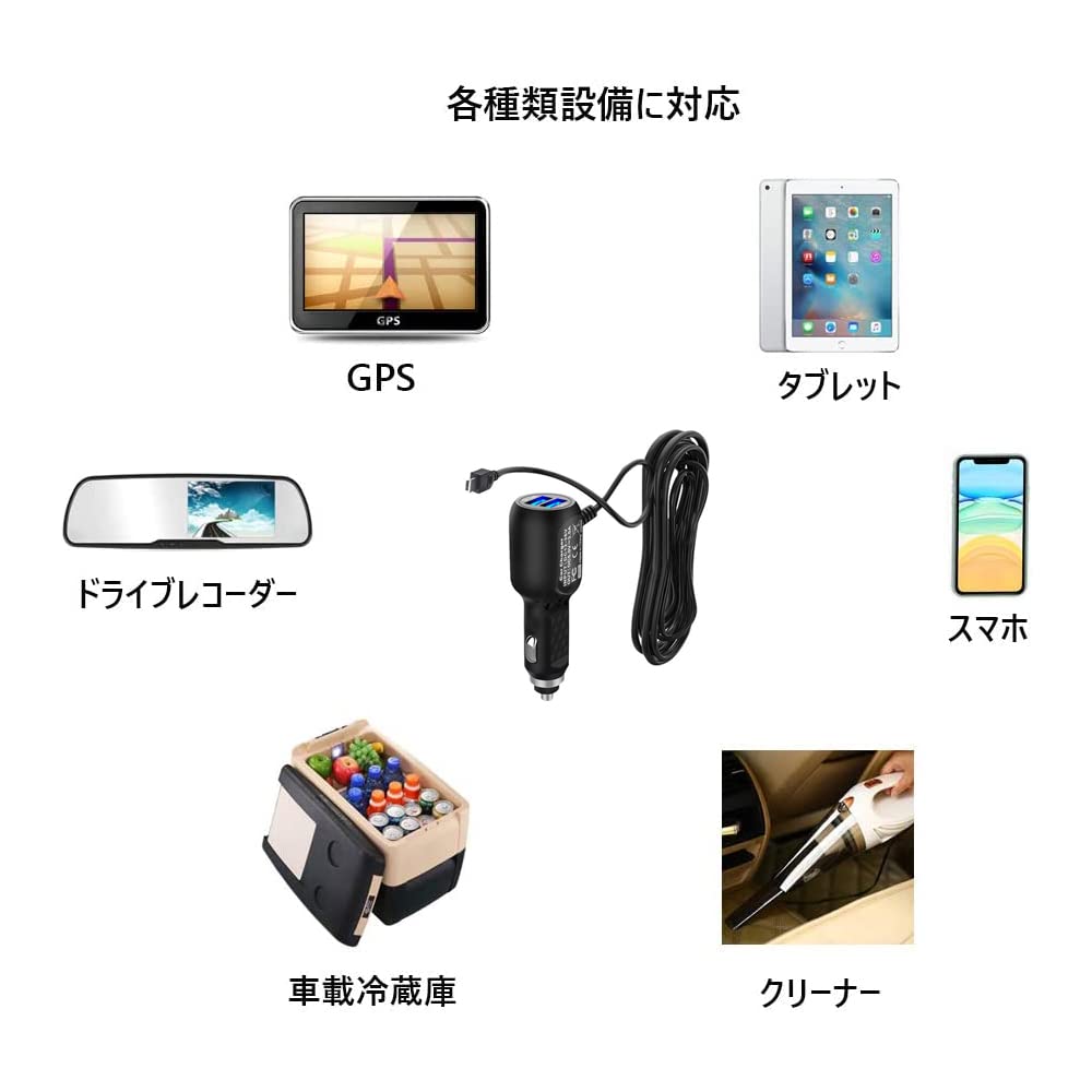 パッケージ内容:シガー電源ケーブル1× ※本商品はMini-USBポートに適用するので、ご購入前には必ずお手持ちの機種の端子形状を確認し、間違えないように気をつけください!