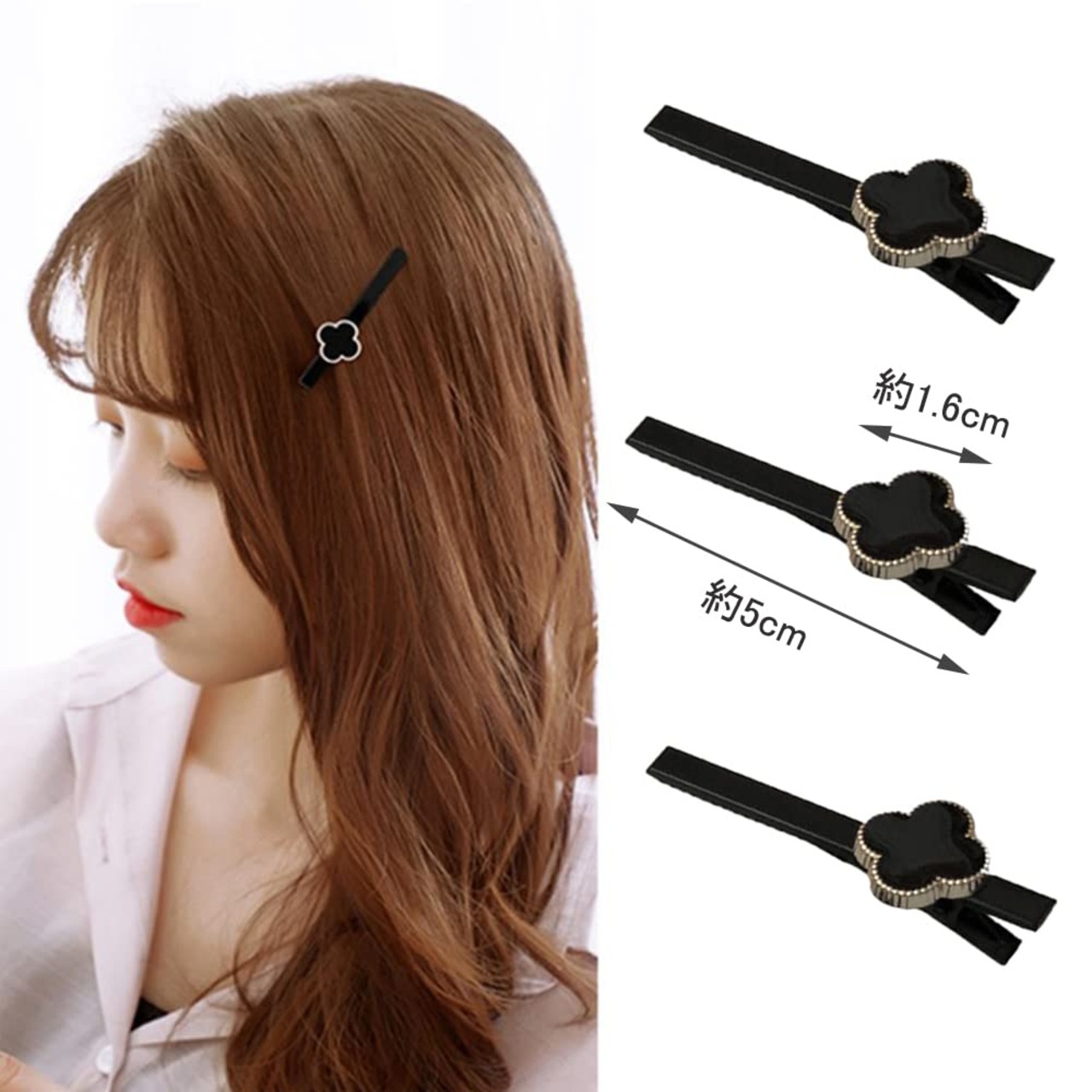 【しっかり留められるストレートタイプ】クリップは定番のストレートタイプ。前髪、後ろ髪、サイドなど様々な箇所にお使い頂けます。洗顔やメイク時にサッと髪を留めたい時にも便利です。