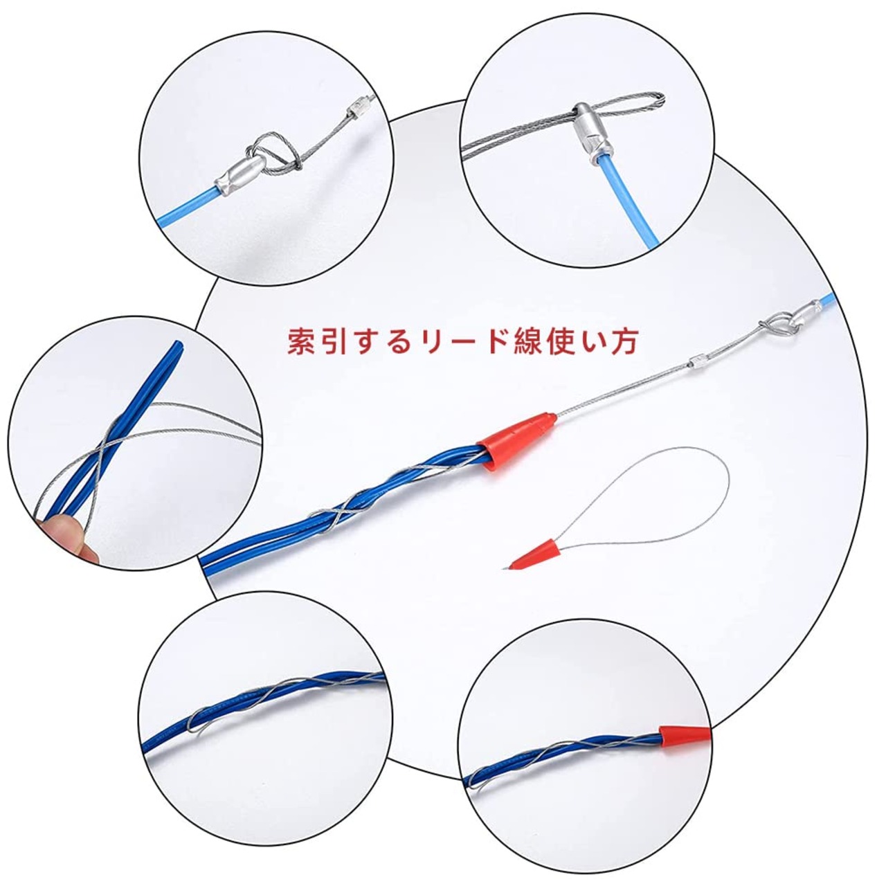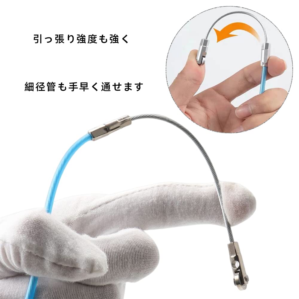 Renjzle 通線工具 15mスチールワイヤー 通線ワイヤー ジョイントワイヤー ロープ通し器 入線専用ワイヤー 紐通し