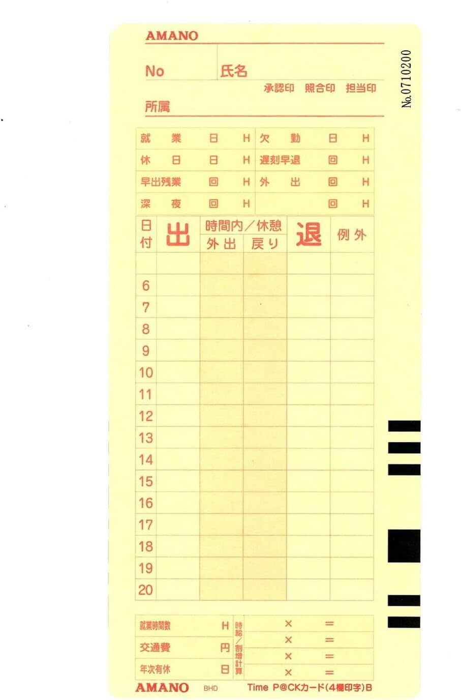 ●20日/5日締め用●対応機種:アマノタイムレコーダーTimeP@CK、TimeP@CKII、TimeP@CKIIWL用●100枚入り