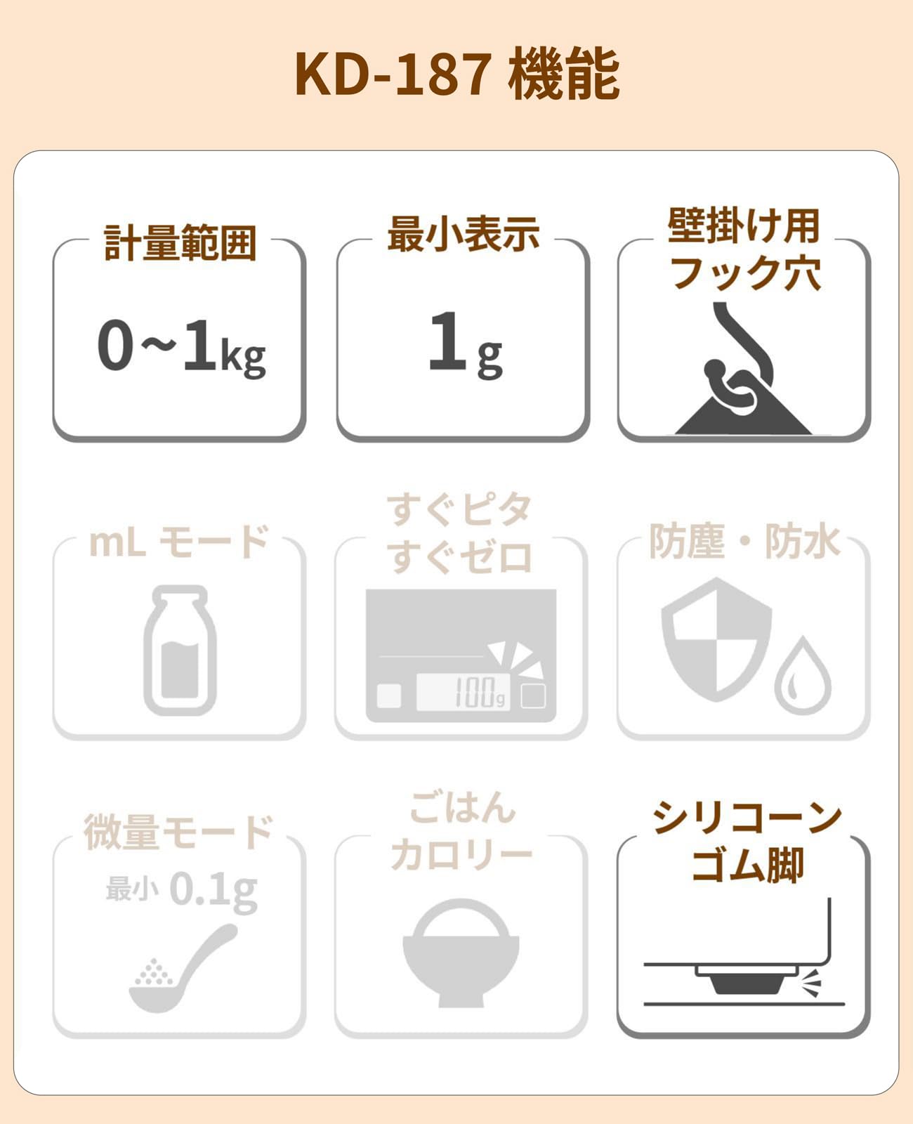 最大計量:1kg、最小表示:1g