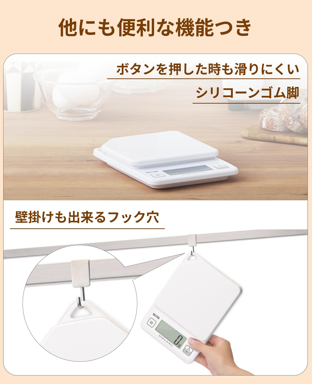 タニタ クッキングスケール 1g単位で1kgまで計れる 収納に便利なフック穴付き ホワイト KD-187 WH キッチン はかり 料理 デジタル