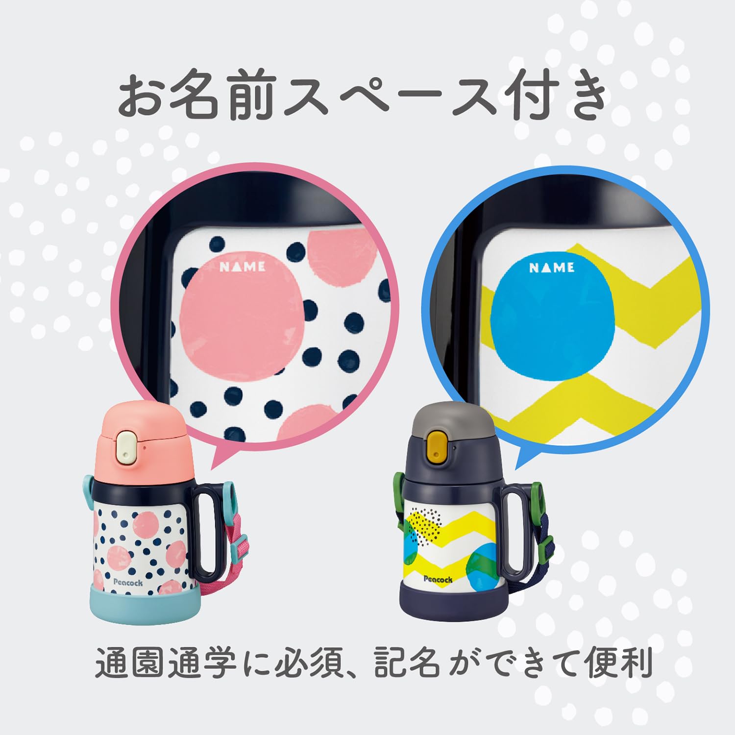 ピーコック魔法瓶工業(The-peacock) ピーコック 水筒 0.36L 0.4L 2way 保温 保冷 魔法瓶 ステンレス ボトル 子供 ワンタッチ コップ付き ストロー付き水筒 ネイビードット ASK-W40 AKD