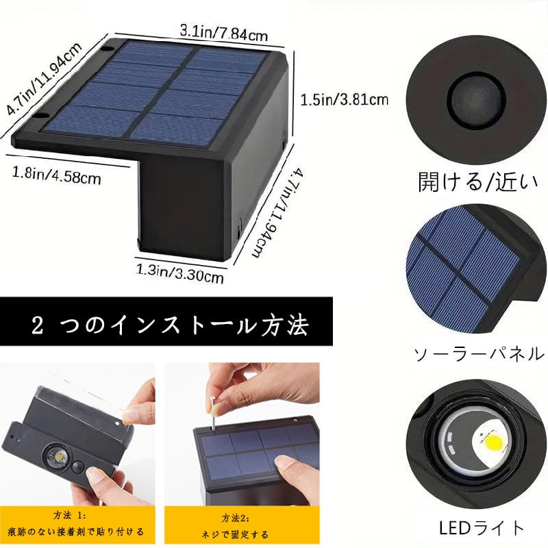 【2024革新版】ソーラー ライト 屋外 おしゃれ表札 ライト 後付け ソーラー看板用ライト 屋外屋外防水、取り付け簡単、庭、階段、通路、裏庭、入り口に適しています (2個)