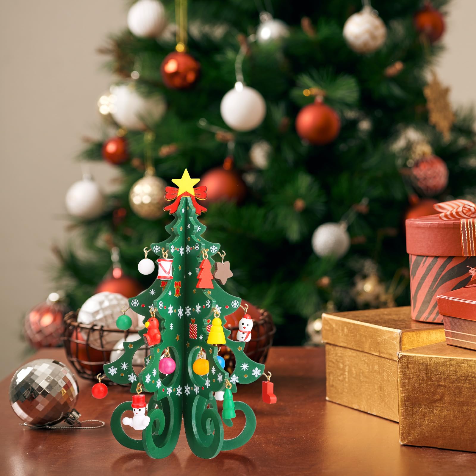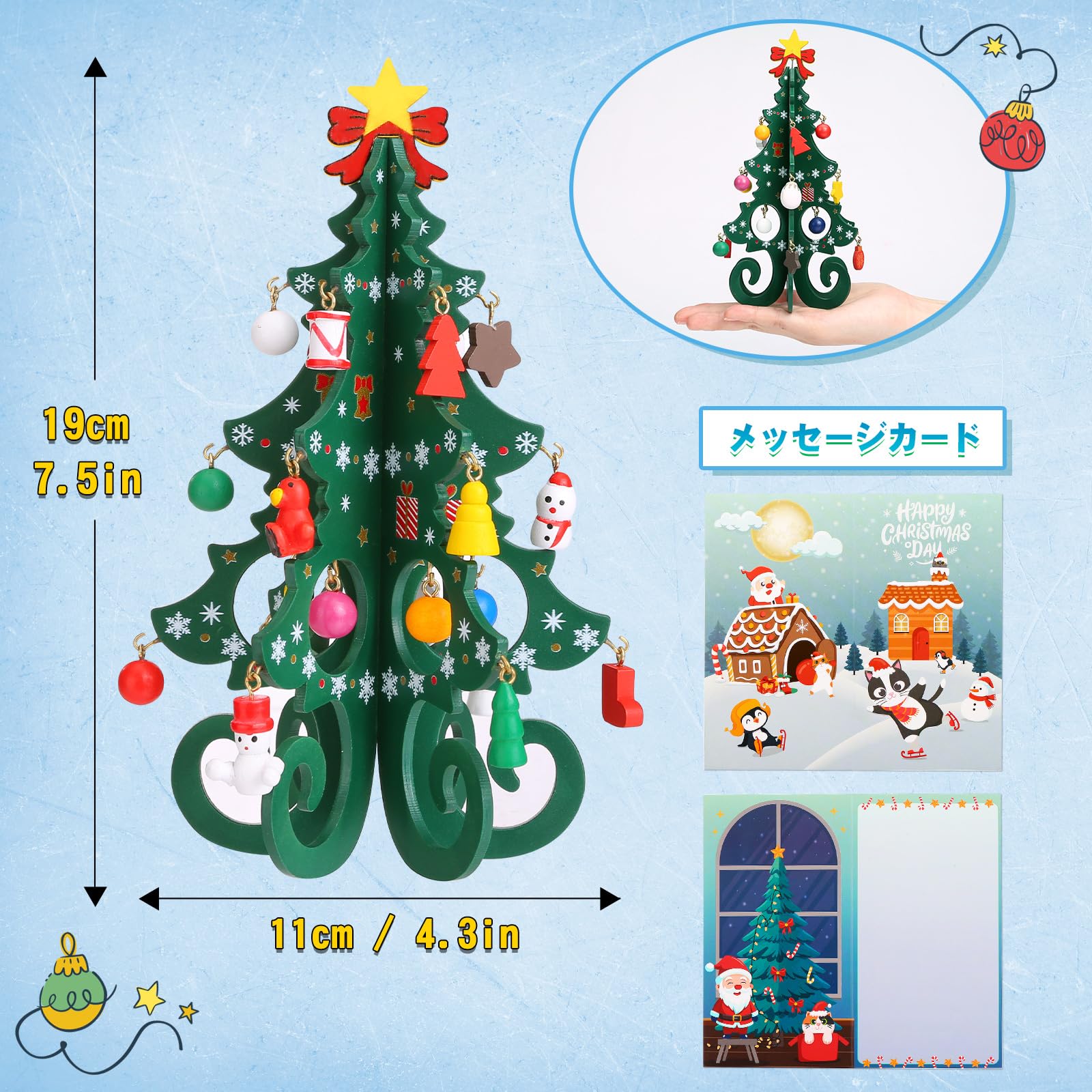 【アドベントカレンダー】窓を開けると、種類豊富なクリスマスツリーオーナメントが登場します!一つずつ飾っていくと、クリスマス当日に可愛さ満点な卓上クリスマスツリーが完成します!