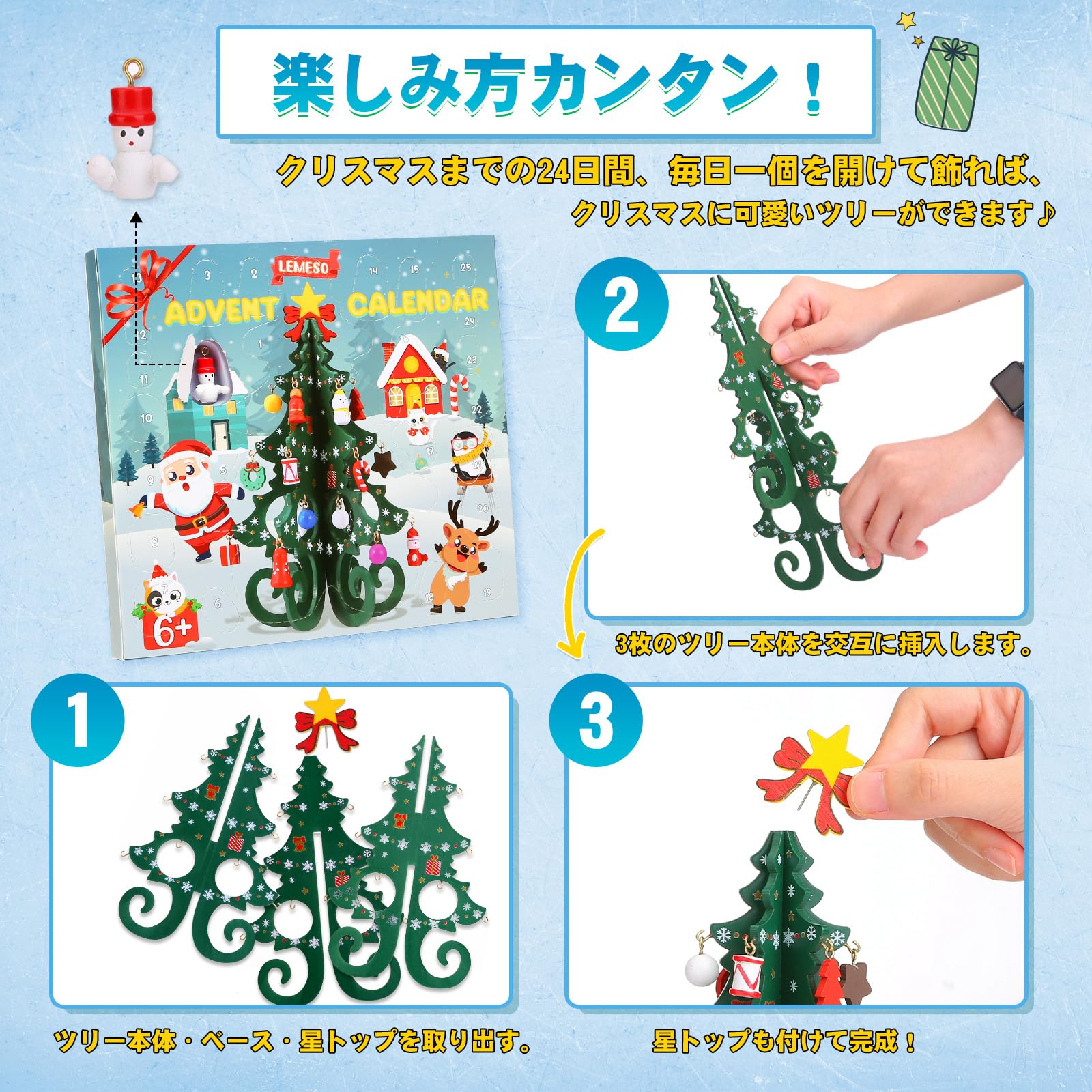 【特価セール】LEMESO アドベントカレンダー 2024 クリスマス 置物 クリスマスツリー 卓上 ミニ 木製 クリスマス オーナメント 飾り 飾り付け デコレーション 装飾 クリスマスプレゼント 子供 おもちゃ クリスマス カウントダウン カレンダー クリスマスギフト 贈り物
