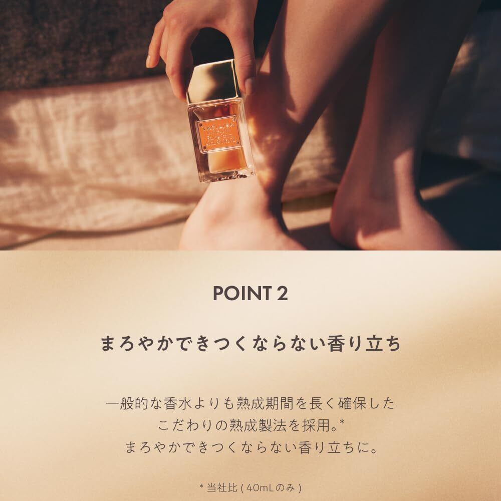 一般的な香水よりも熟成期間を長く確保したこだわりの熟成製法を採用*。まろやかできつくならない香り立ちに。*当社比