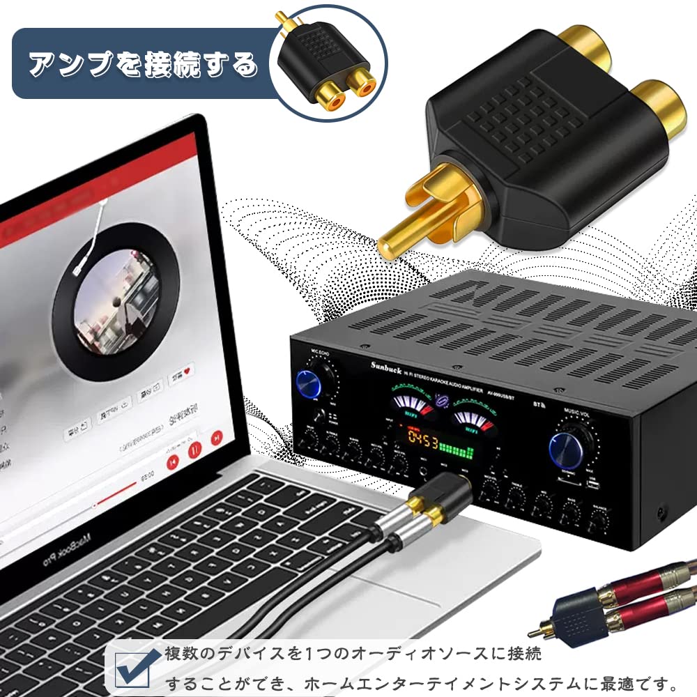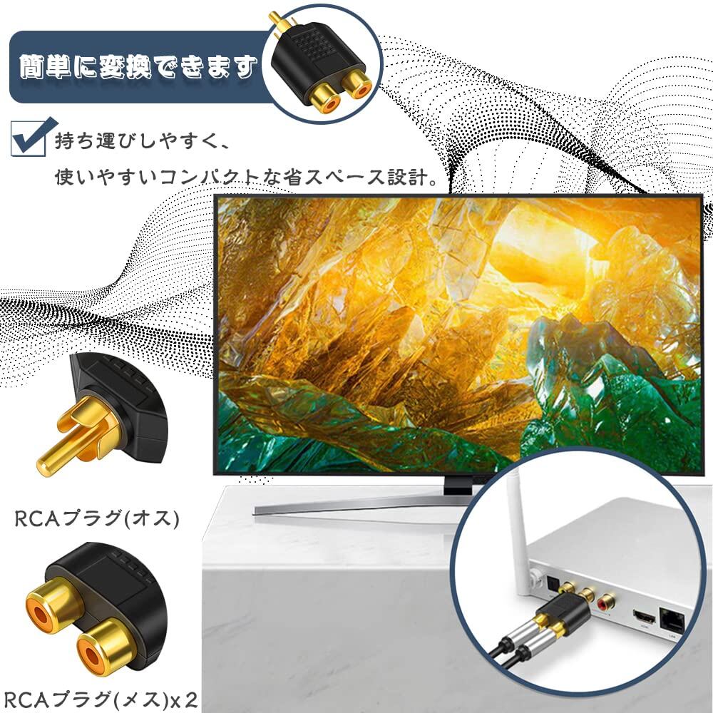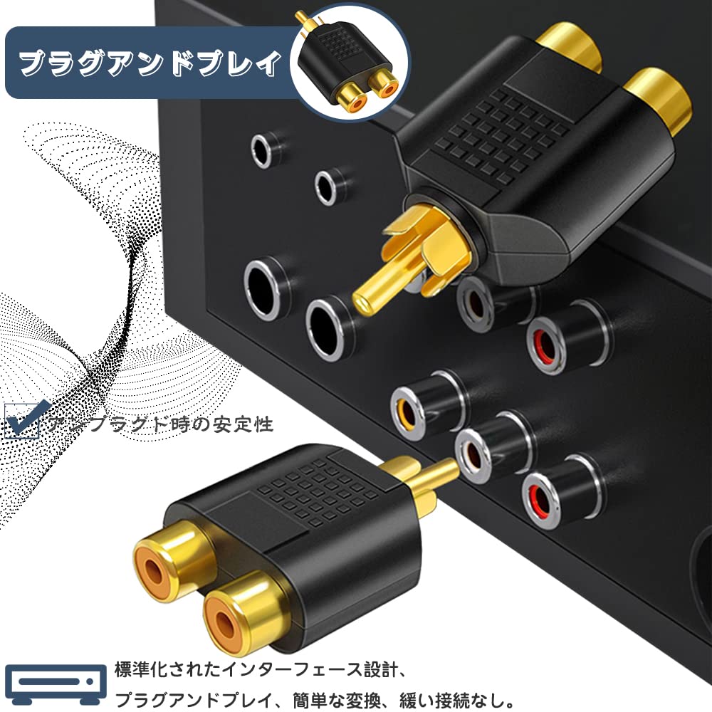 【新着商品】RCA 分配 アダプター ビデオ オーディオ 2分岐アダプター 変換プラグ アンプ スピーカー モニターなど対応 ピン端子 プラグアンドプレイ RCAオーディオケーブル 分配器 RCAプラグ(オス) RCAプラグ(メス) 2個セット