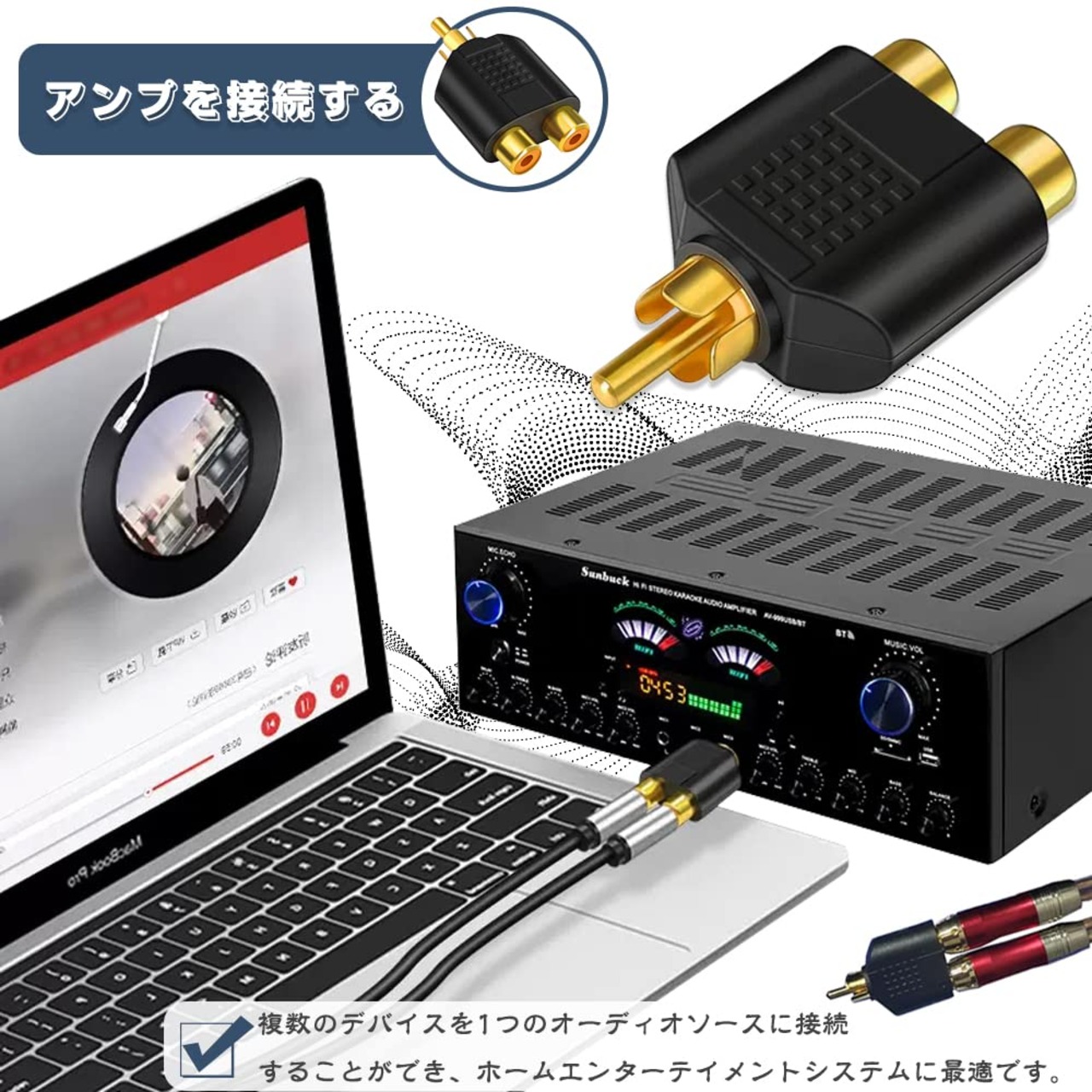映像と音声を2つに分けるためのアダプター。RCAオーディオケーブルは、サウンドを愛するすべての人のための必需品です。