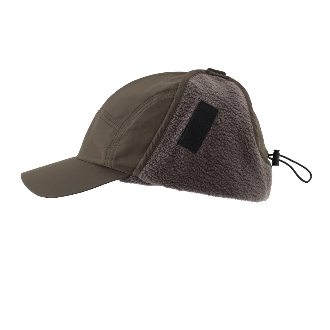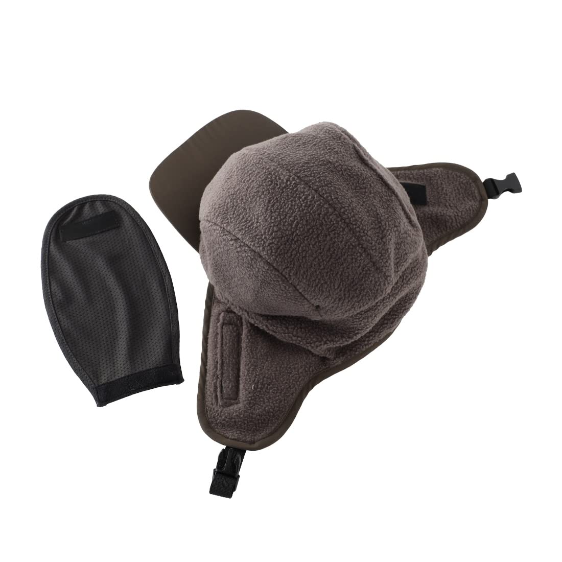 暖かいフリース裏地のメンズ耳あて付き帽子は、耳あてが折りたたむと、ランニングキャップになる
