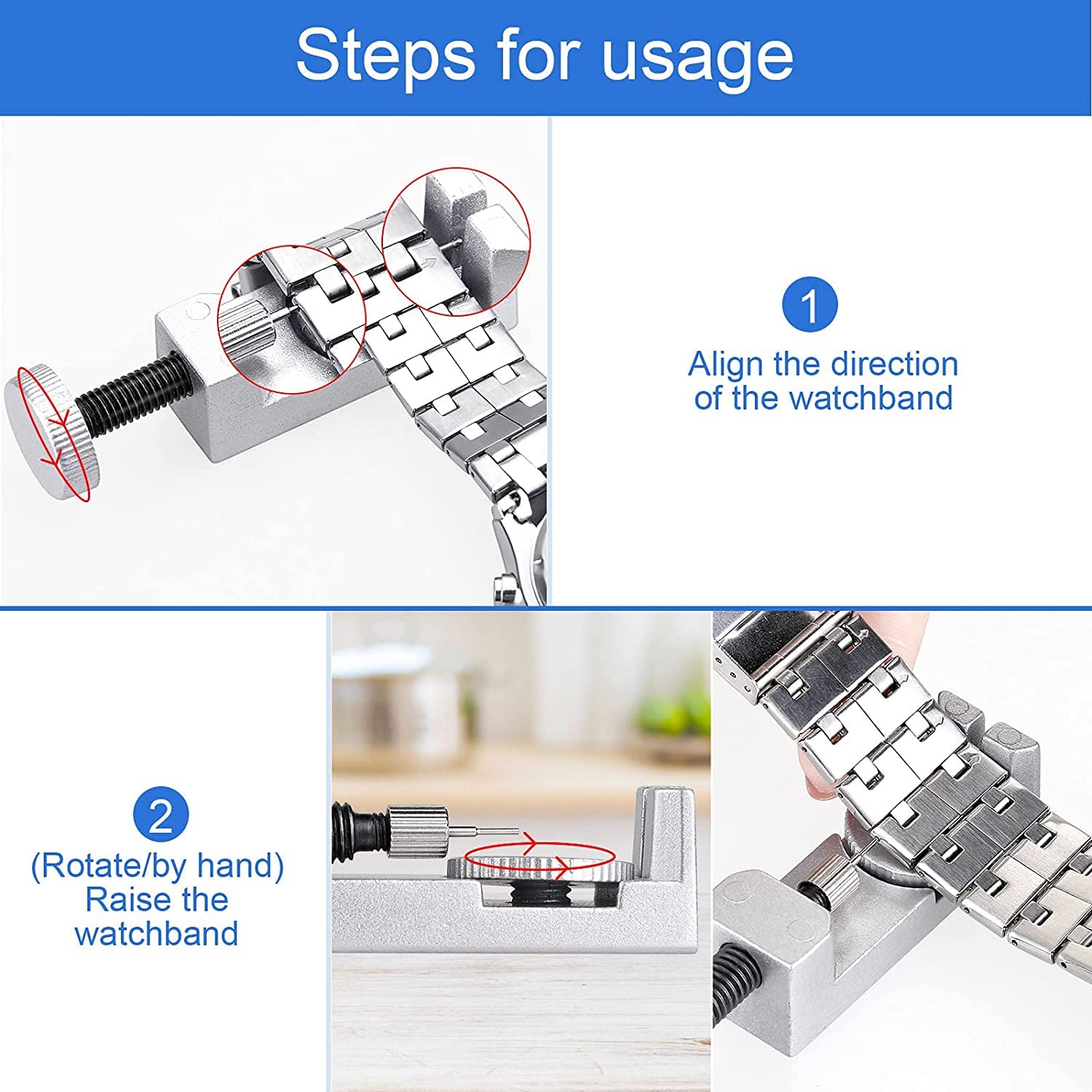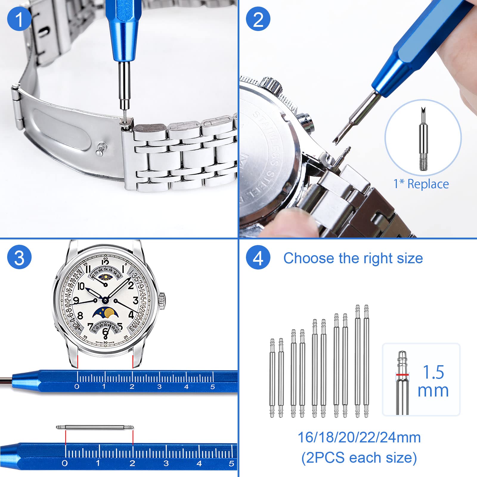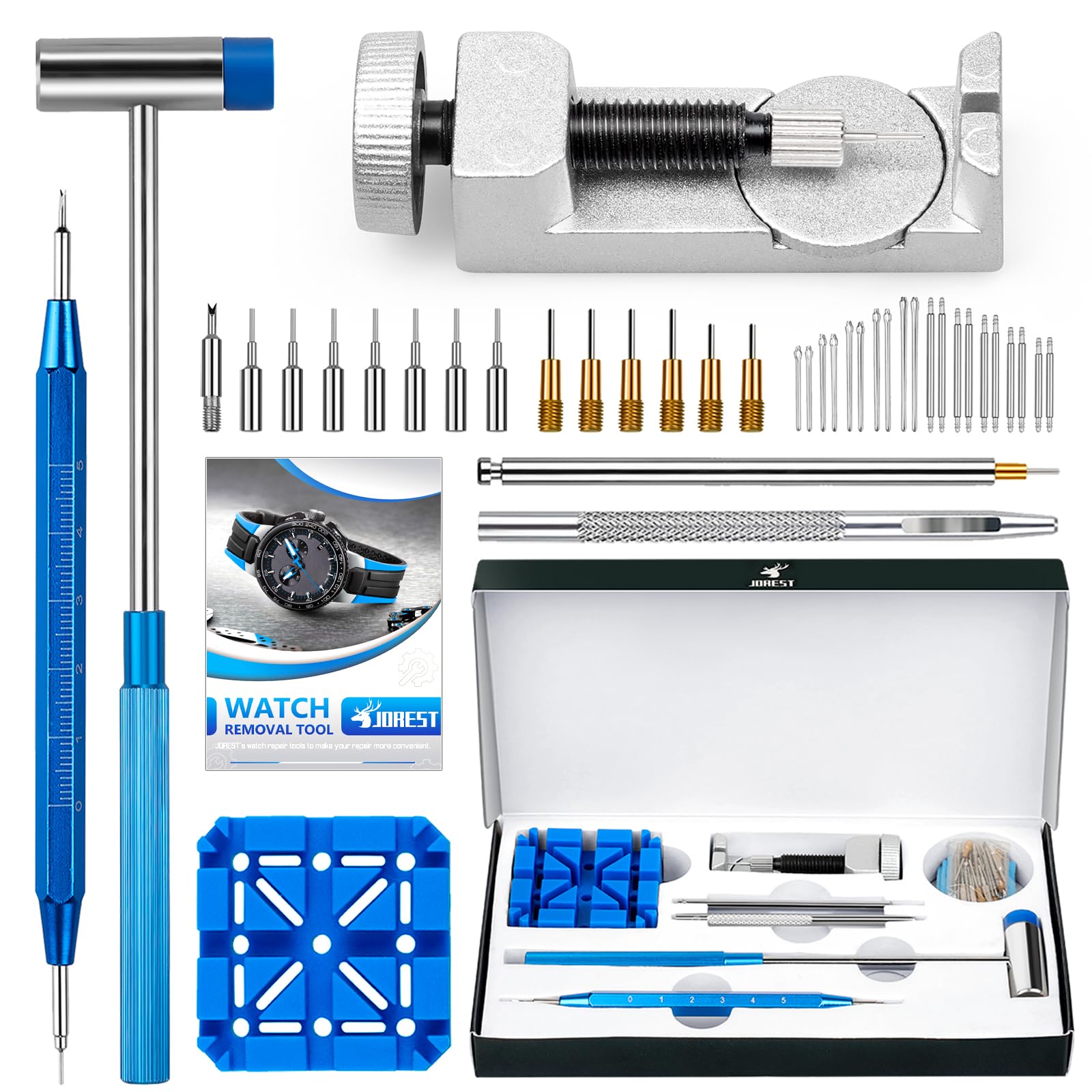 【JOREST】 時計バンド調整工具セット、セット腕時計 ベルト交換 工具、バネ棒外し 時計、腕時計 ピン、ピン抜き工具、取扱説明書(英語版)