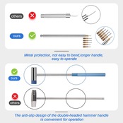 【他製品との違い】-- 他製品と比較して、ベルトの長さを調整するために革製の時計穴あけ器が追加されています。打撃ロッドの長さを長くし、両頭ハンマーのハンドルも改良して操作しやすくしました。パンチ針を短くし、金属保護を採用しているため、曲がりにくく交換が可能です。