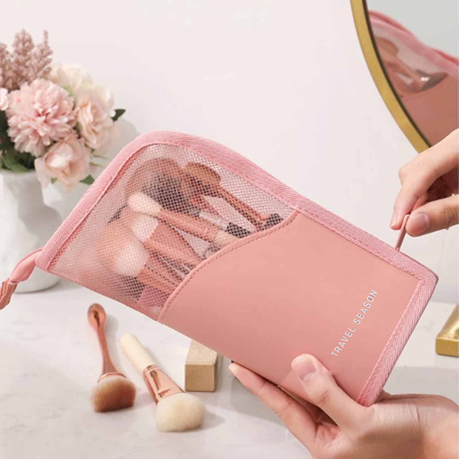 YINKE メイクブラシケース ブラシスタンド 化粧筆 ポーチ ペンケース 大容量 化粧 ホルダー ペン立てペンケース 小物入れ 収納ボックス 出張·旅行 収納 (ピンク)
