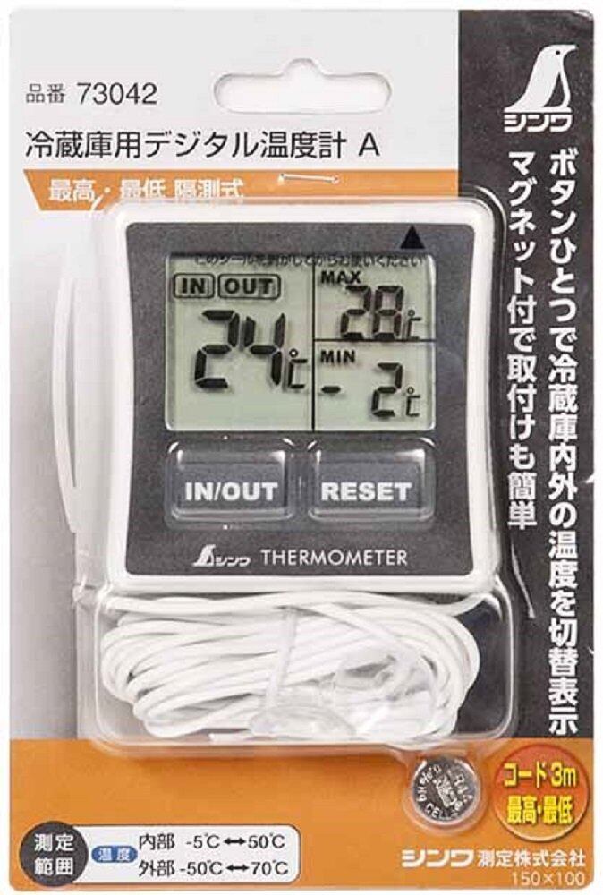 シンワ測定(Shinwa Sokutei)冷蔵庫用デジタル温度計A最高最低/隔測式 73042