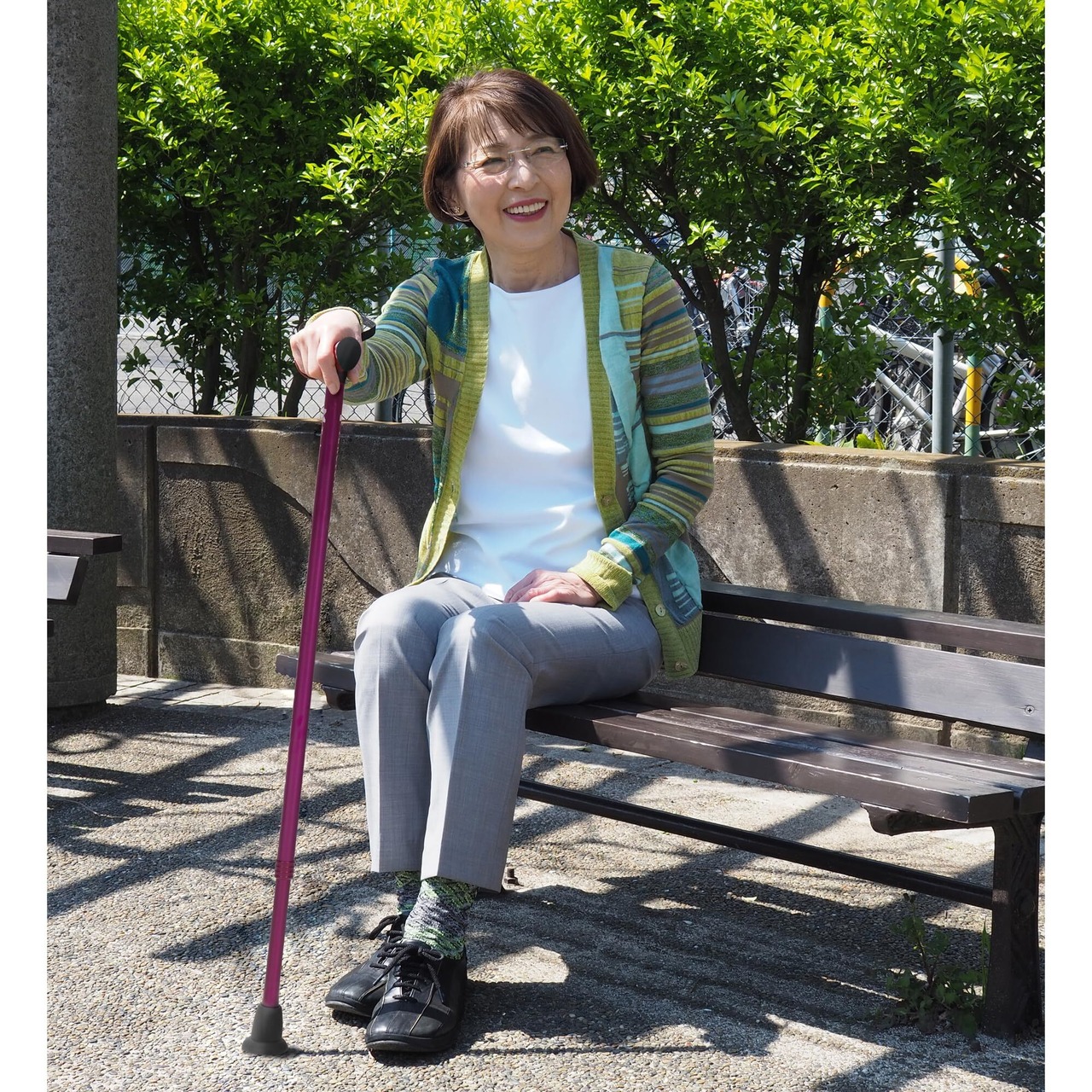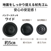 接地面が広く、食いつきの良い、弾力のある円盤状の杖先ゴムで安定感を確保します。