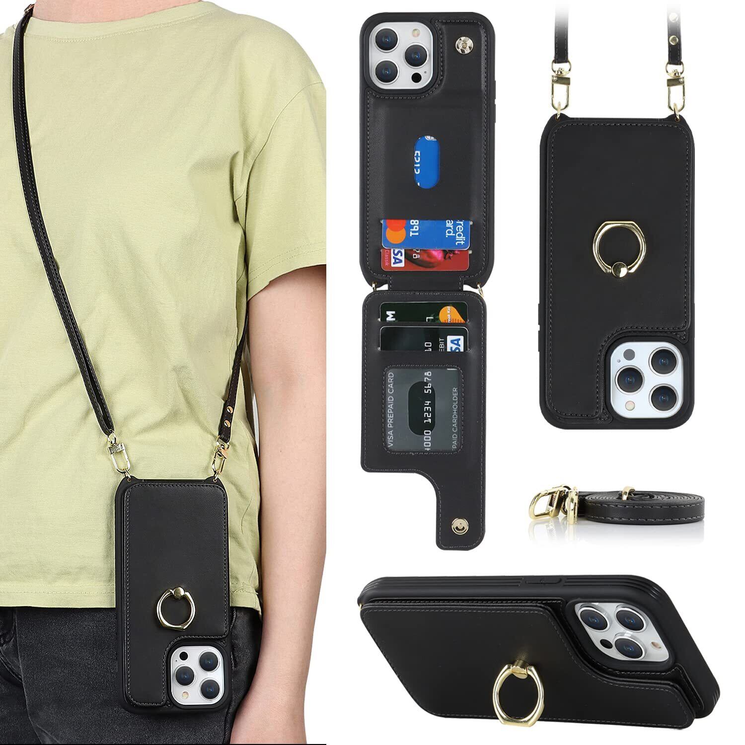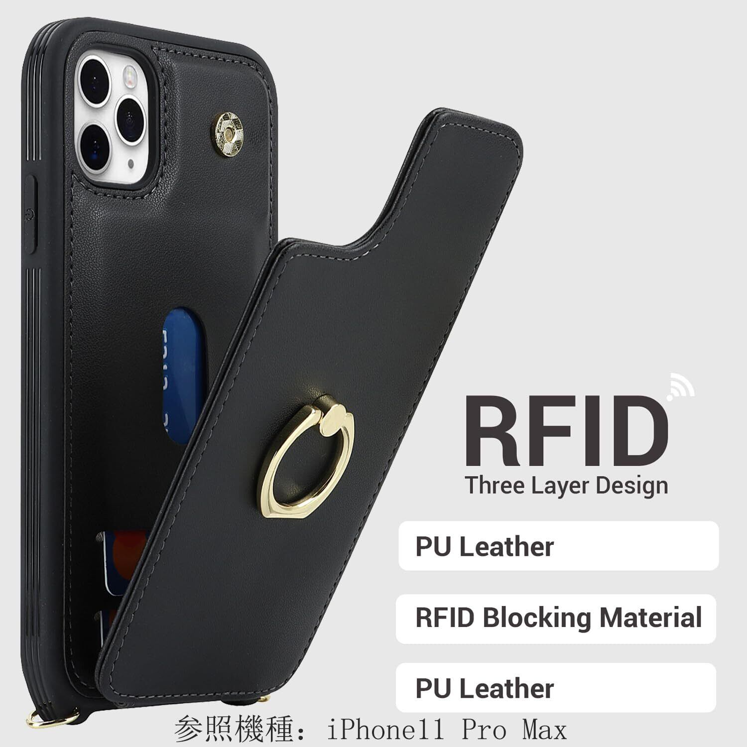 Cavor iPhone12 mini 手帳型ケース iPhone12 mini スマホ 携帯 用 ケース ショルダー クロスボディ肩掛け 首かけ 斜めがけショルダーケース背面ポケット付きiPhone 12 mini 財布型カードケース【上下開】アイホン12 mini スマホケース 携帯ケース【RFID機能】財布型 case カード収納 360°回転リング横置 磁気機能-ブラック