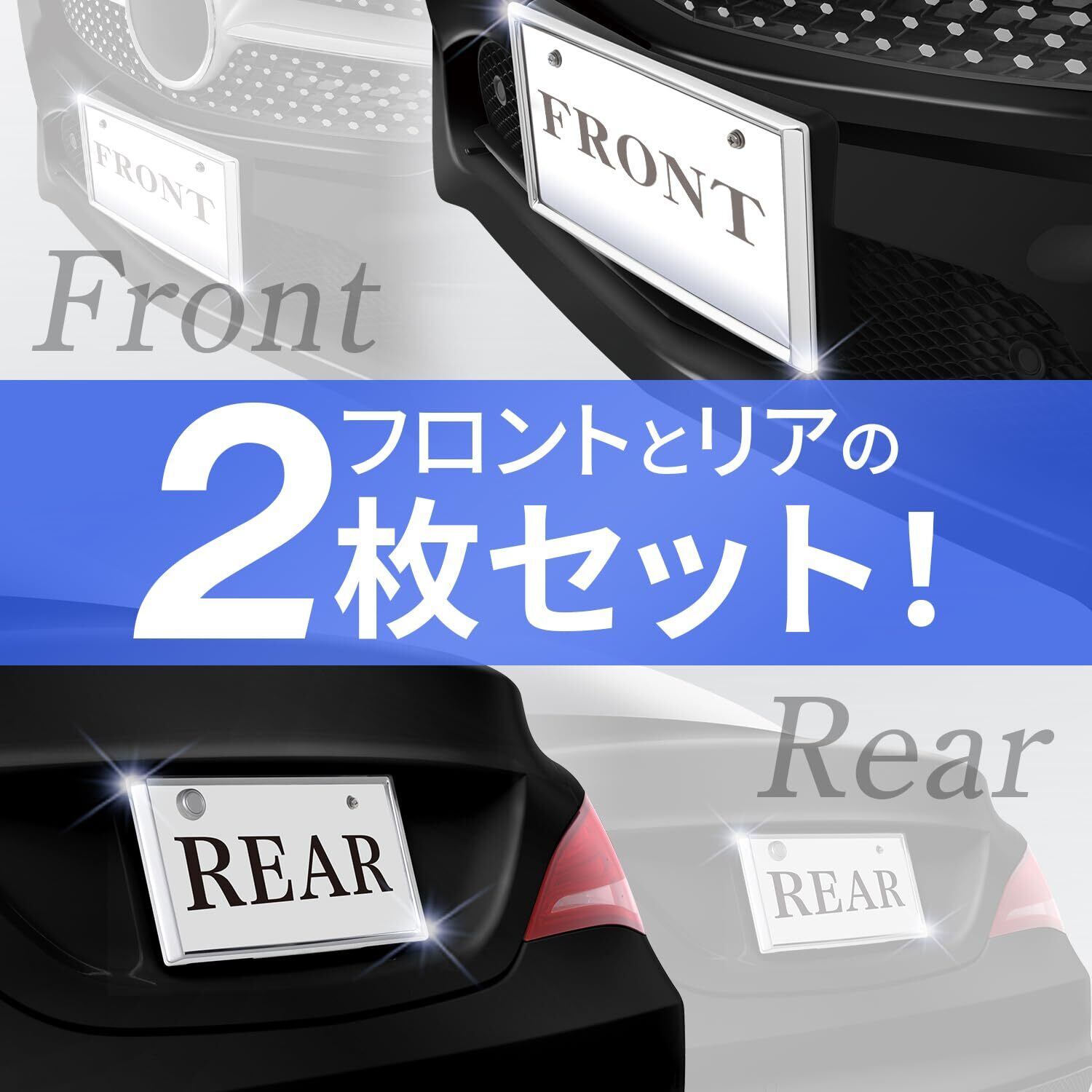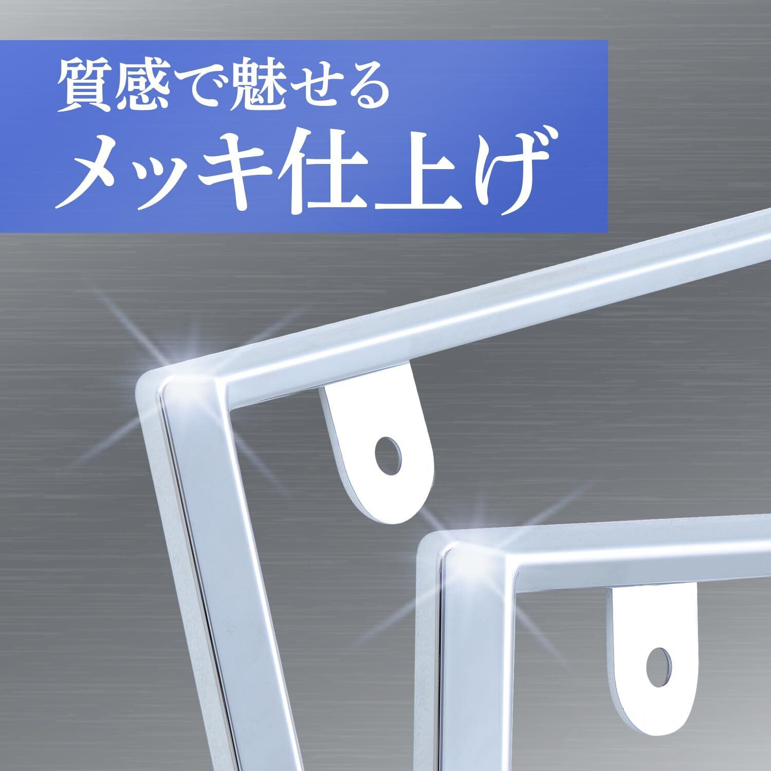 ●表面に超軽量・高品質なメッキが施され、リア・フロントにそれぞれ取り付け可能なナンバーフレームセットです。
