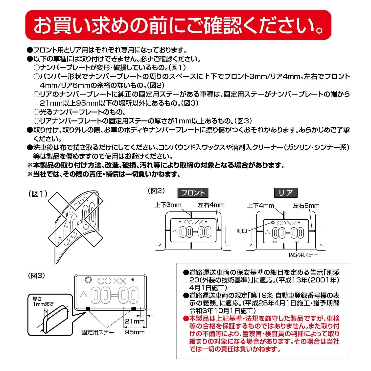 フロントとリアのナンバープレートにそれぞれ取り付けできるナンバーフレームセットです。