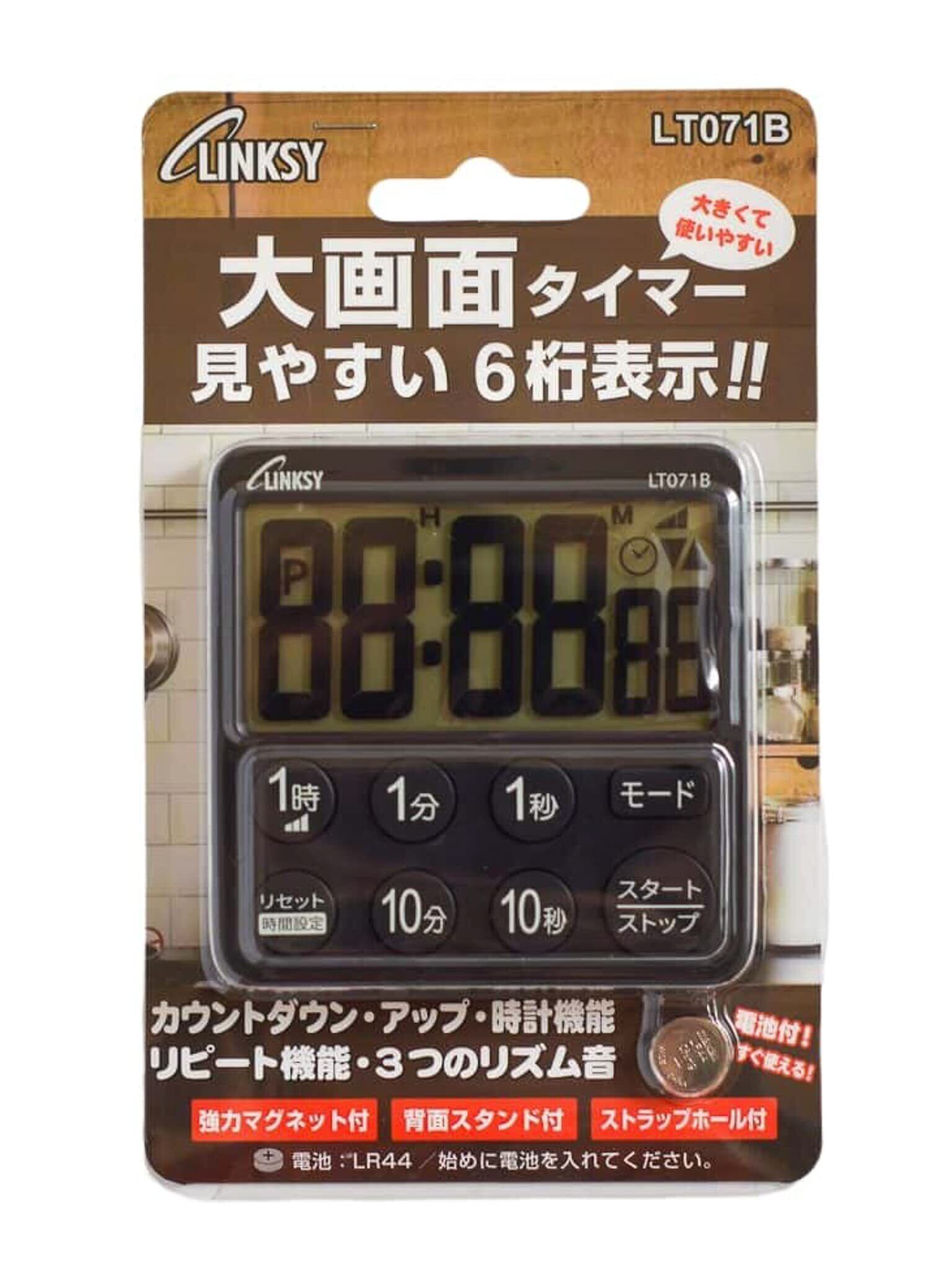 ワイナック(YNAC) LINKSY 大画面タイマー 見やすい6桁表示! ! 時計付 LT071BA 7.8×7.8×1.7cm ブラック