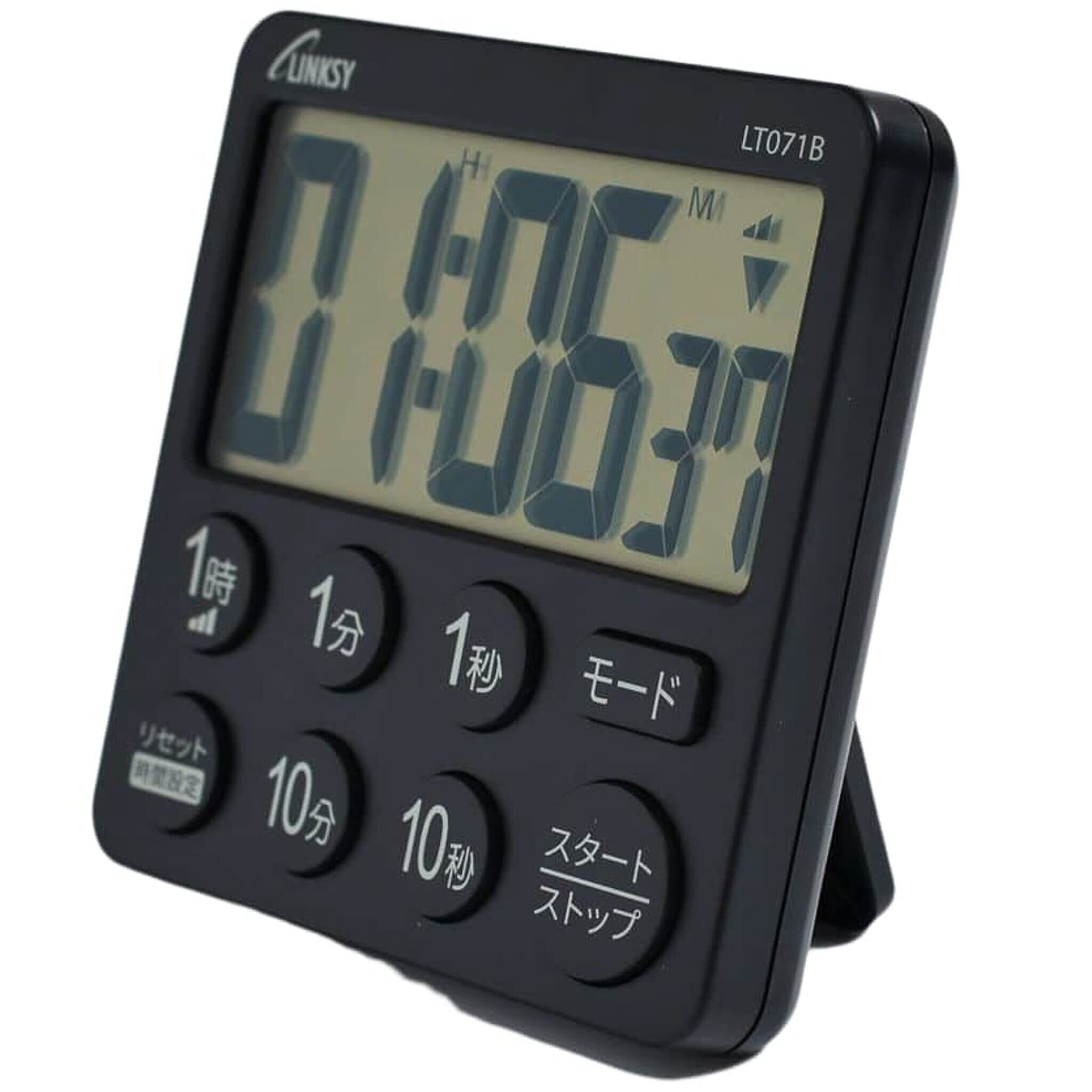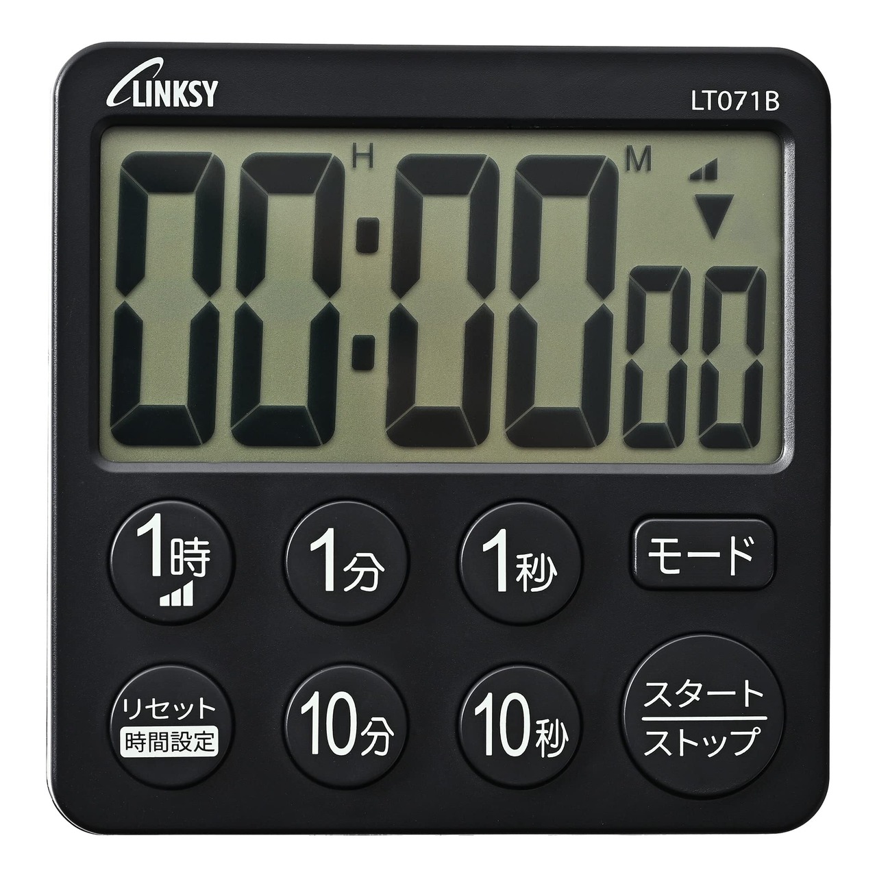 【新着商品】ワイナック(YNAC) LINKSY 大画面タイマー 見やすい6桁表示! ! 時計付 LT071BA 7.8×7.8×1.7cm ブラック