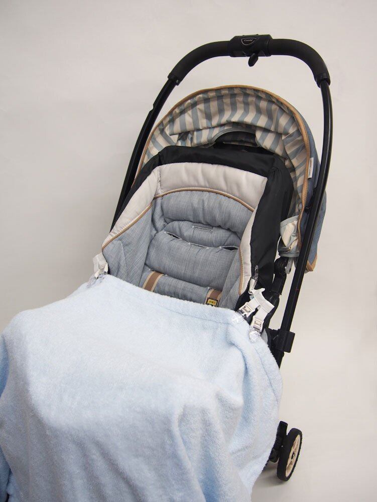 2連使いで、敷布団と敷きパッドを挟んでもOK! ベビーカーのブランケットを留めることもできます。