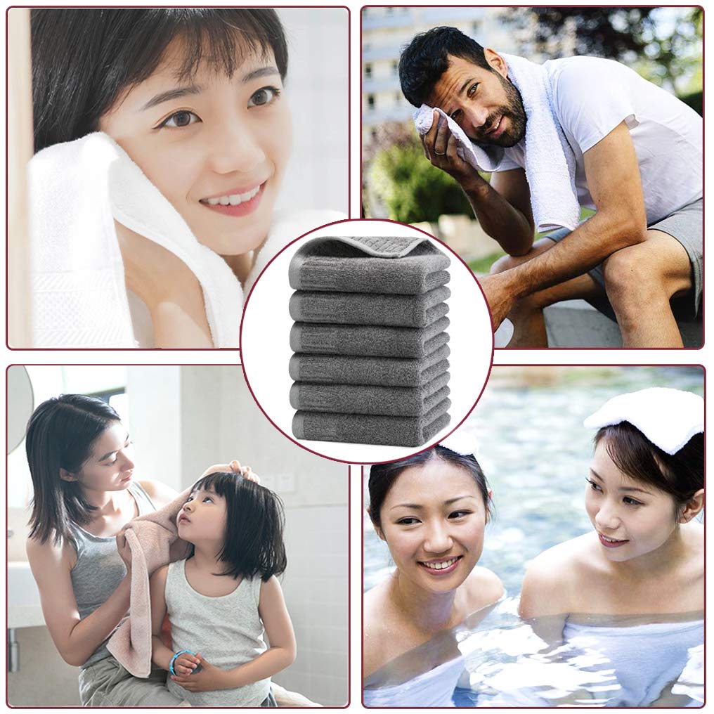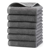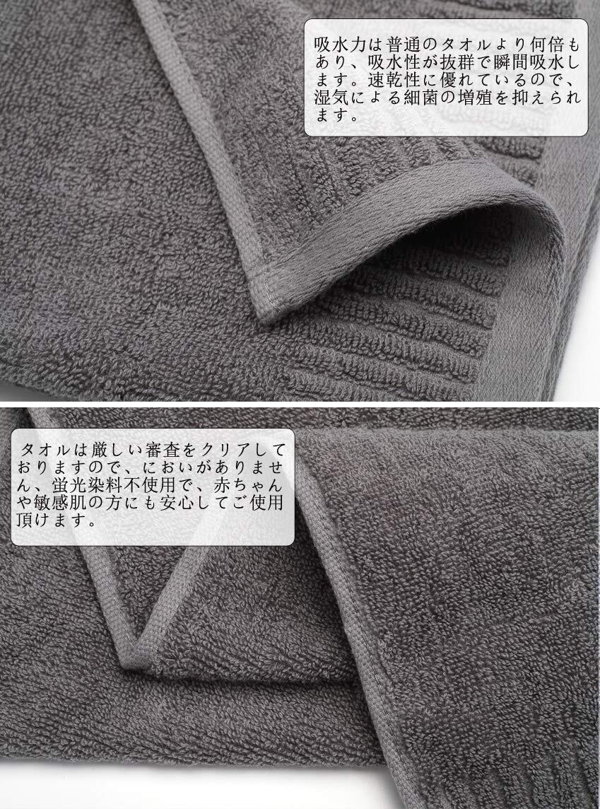 【フェイスタオル 6枚セット】素材:綿100%、サイズ:約35×70cm、重さ:約100g(1枚)、セット内容: グレー 6枚。