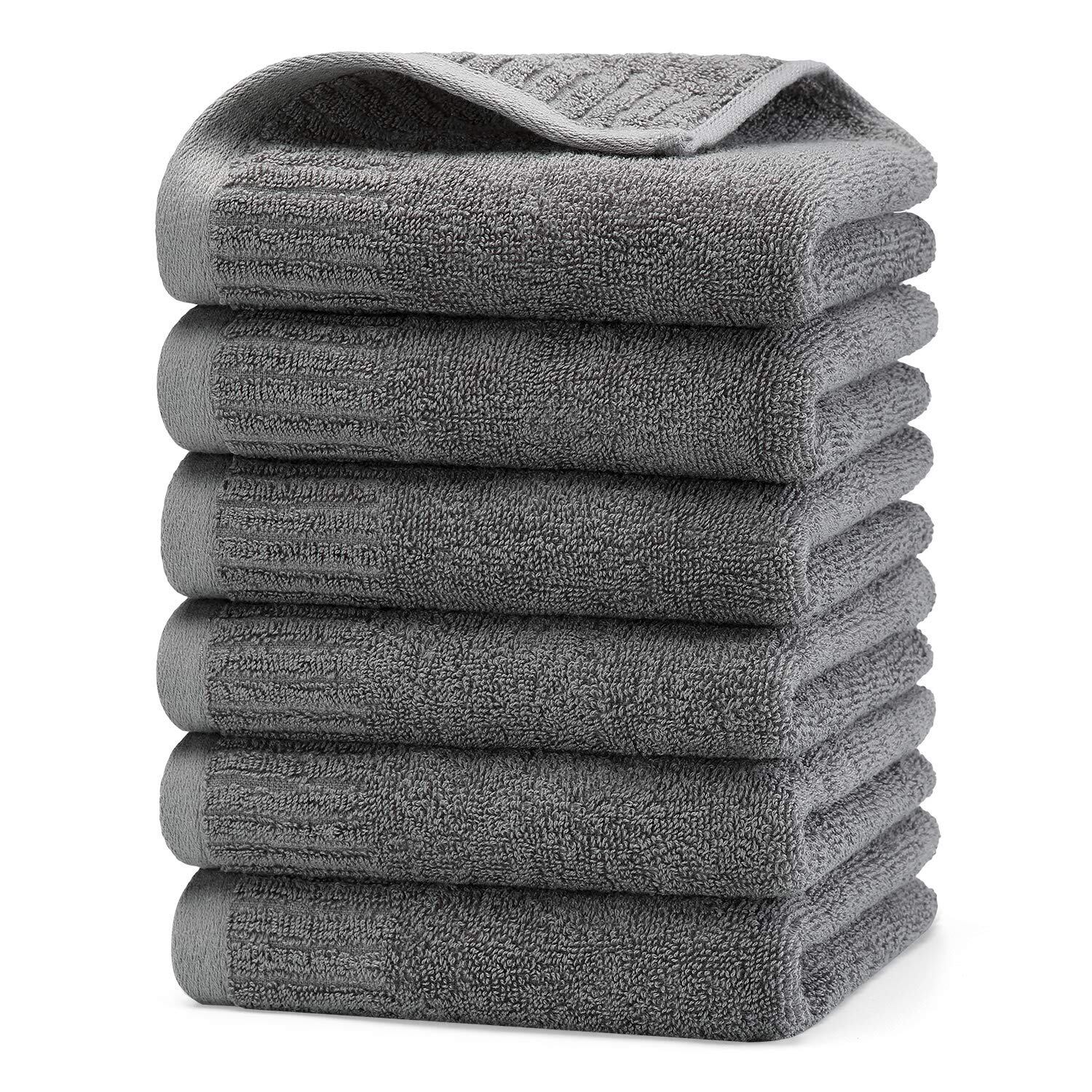 TMVOK フェイスタオル グレー 無地 タオル おしゃれ 北欧風 綿100% 6枚セット 吸水速乾 35*70cm 厚手 大判 抗菌防臭 家庭用、ホテル、業務用、スポーツなどにも最適 四季通用 グレー6枚