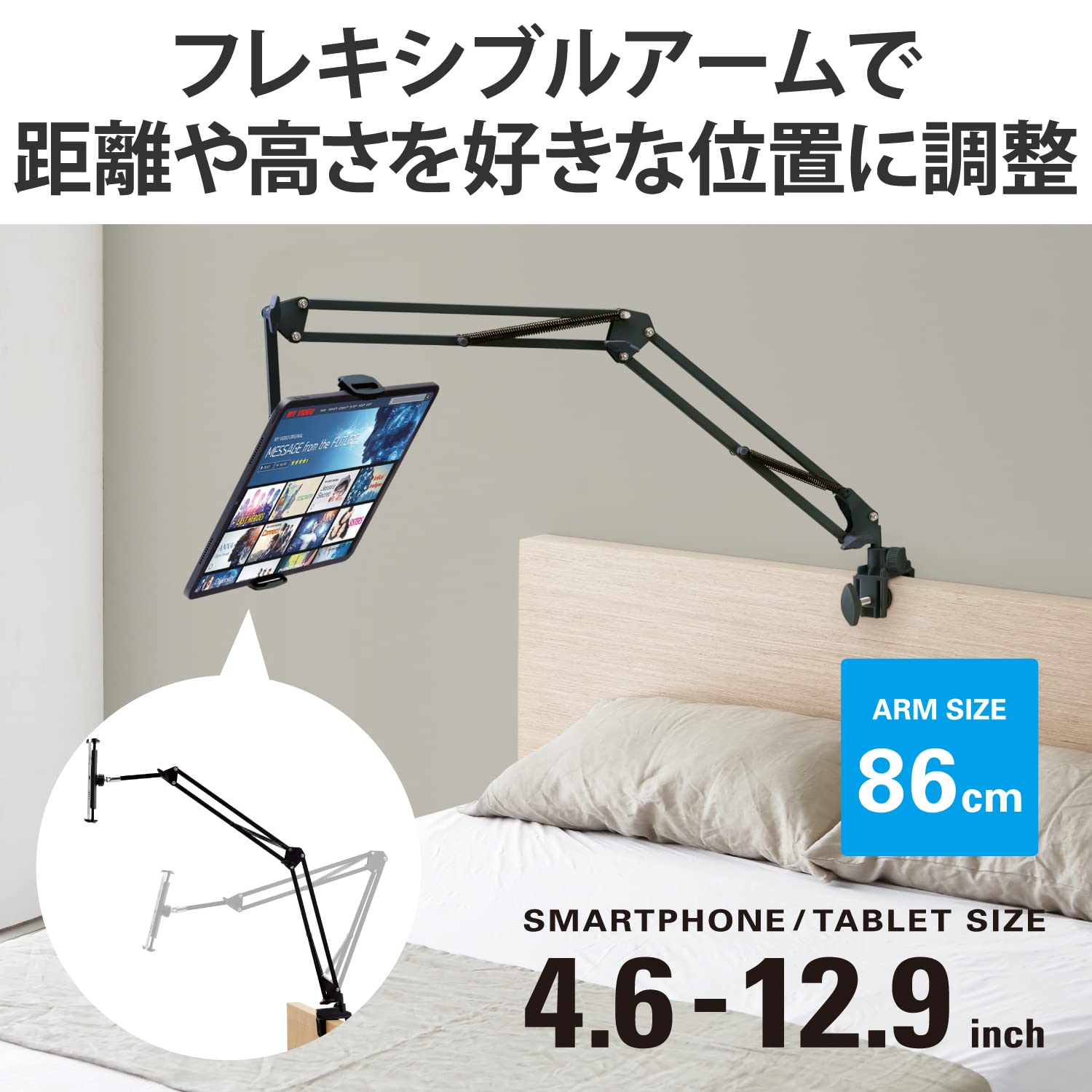 エレコム(ELECOM) タブレット スタンド アーム スタンド iPadスタンド スマホスタンド iPhoneスタンド ベッドサイド取付可能 寝ながら 360度回転 Zアーム型 4.6~12.9インチ対応 ブラック TB-DSZARMBEDBK
