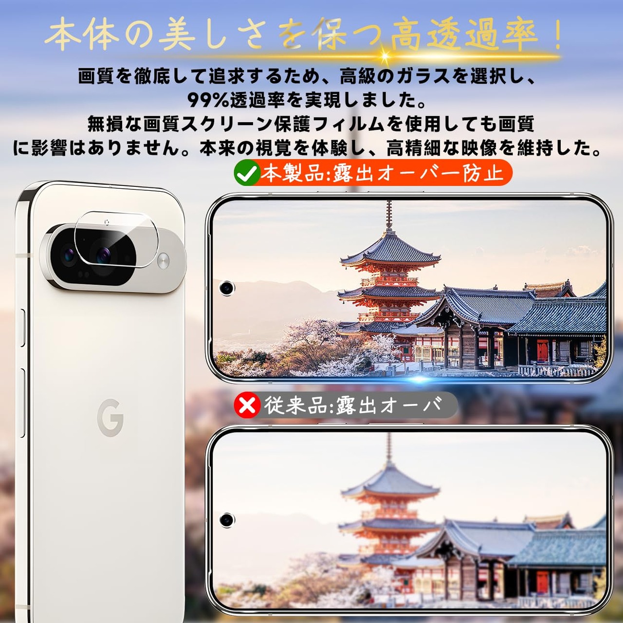 【専用設計·簡単に貼り付け】 本製品 Google Pixel 9 5G 専用液晶画面保護ガラスフィルムです。本商品は厳選した素材を採用して作られており、フィルムのシリコン自己吸着層があるので、スチールフィルムを携帯電話に合わせて軽く置くだけで、気泡が入らないように簡単に取り付けられます。(ポイント:フロントカメラのカメラ穴についてですが、ほこり・異物などの堆積を防止するため、ガラスフィルムにカメラ穴を開けていません。Seninhiのガラスフィルム 、透過率は99.9%なので、フロントカメラの正常使用に全く影響がありません。)*機種によってサイズが異なりますので、ご購入の場合に機種をよく確認してください。
