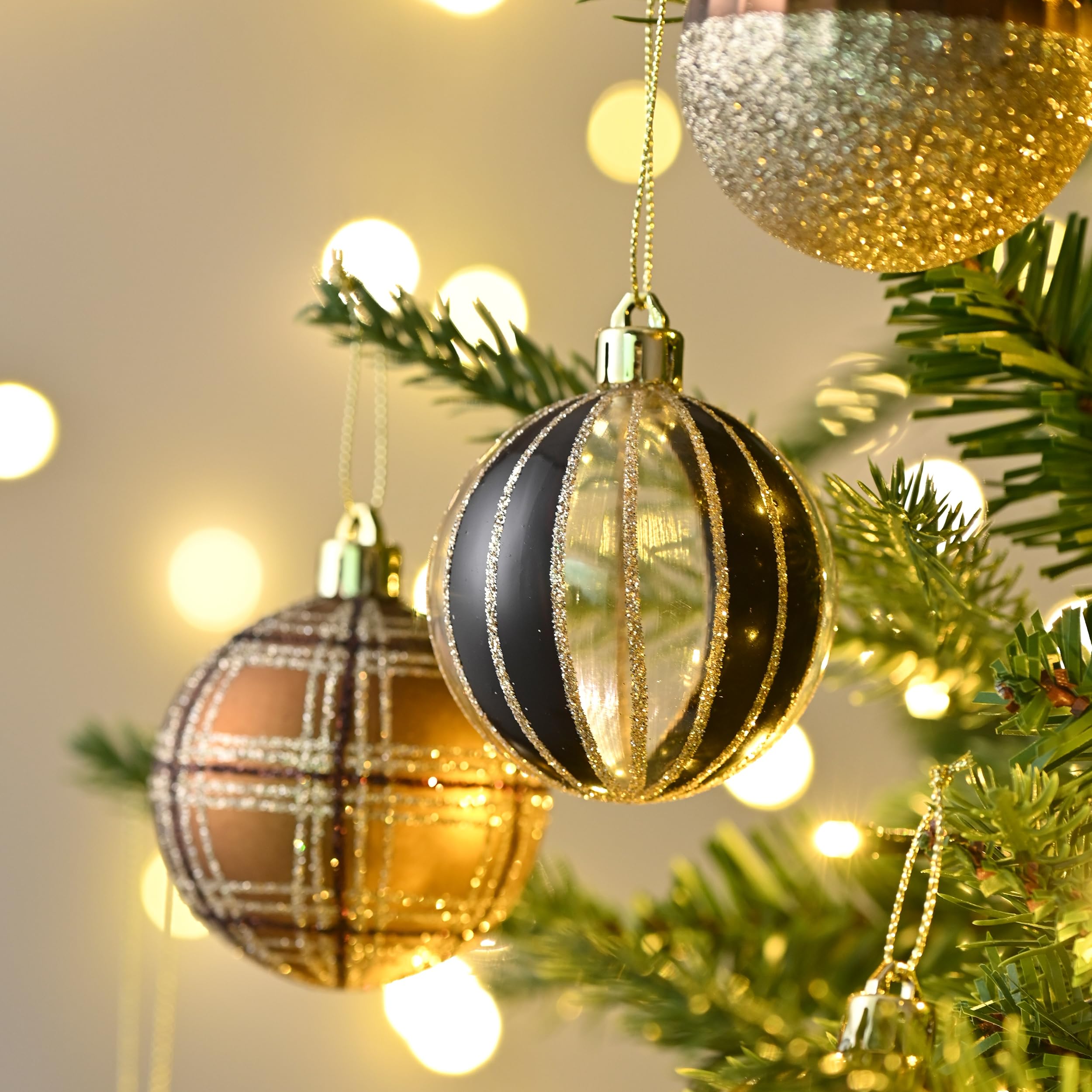 【安全性と耐久性】これらのクリスマスボールは良質な破砕防止プラスチックで作られ、子供、老人、ペットを含むすべての人に安全であり、しかも耐久性があり、長年の楽しみを確保しています。