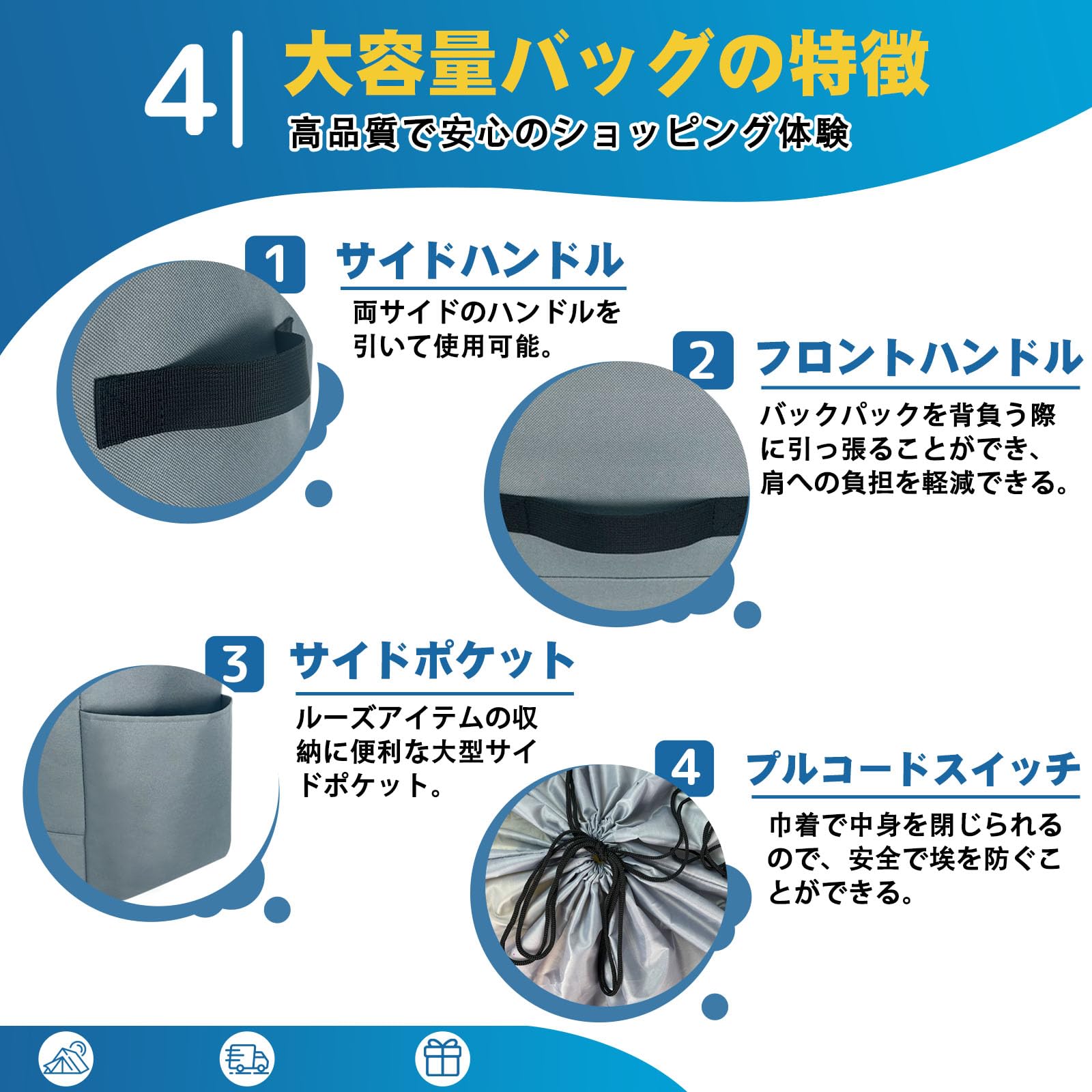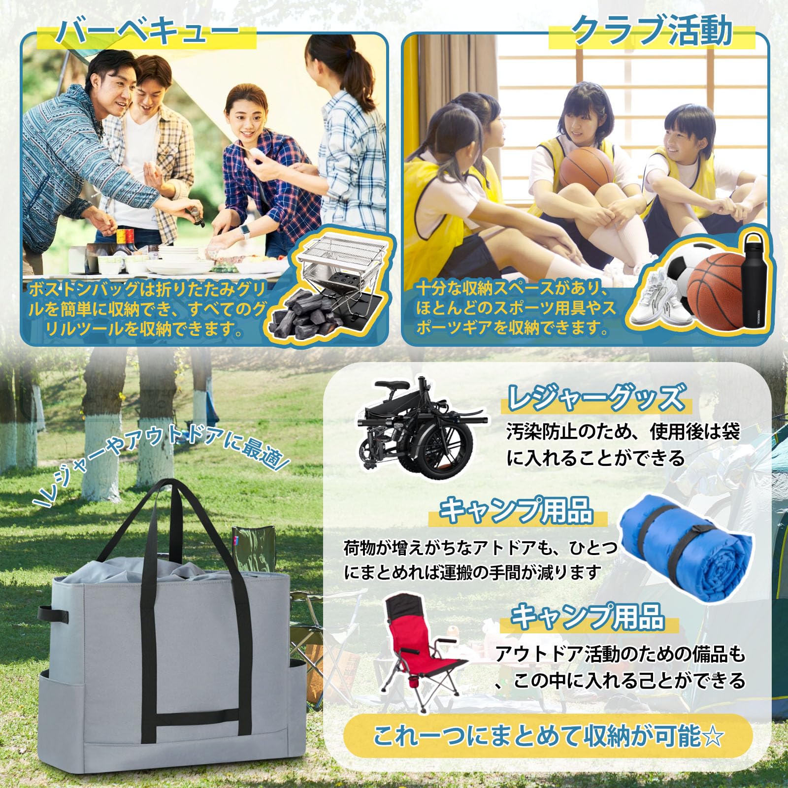 [DSDCDJ] トートバッグ 大容量 巾着タイプ 収納バッグ 防災グッズ キャンプバッグ アウトドア 手提げ袋 肩掛けバッグ 道具収納 大型ショッピングバッグ