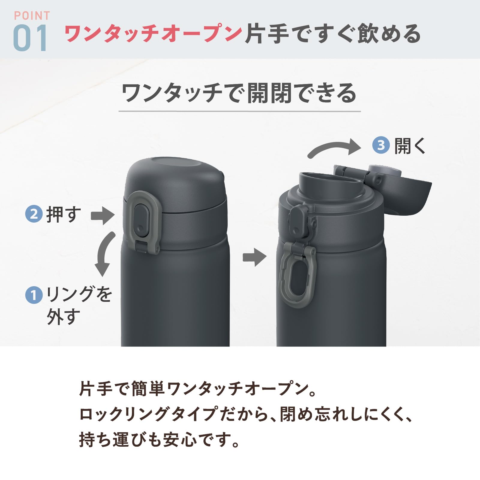 【在庫処分】ピーコック魔法瓶工業(The-peacock) ピーコック ワンタッチマグボトル チャコールグレー 350ml 水筒 保温 保冷 魔法瓶 AKT-35 HCH