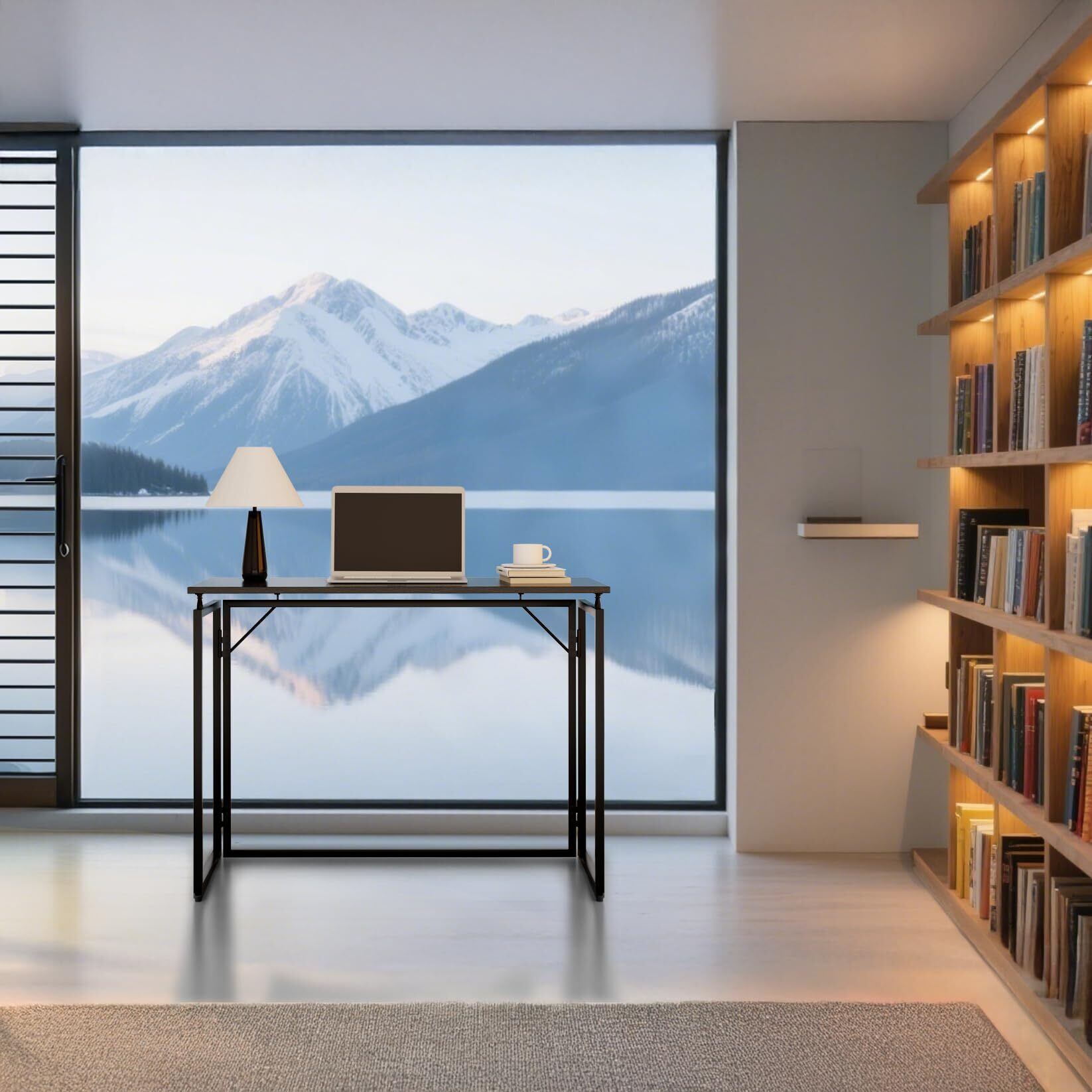 alawooder 折りたたみテーブル コンパクト デスク 完成品【組み立てあ簡単 】 耐荷重60kg 省スペース僅か6cmの薄さ オフィスワークテーブル パソコンデスク 木製 ゲーミングデスク 在宅勤務 折りたたみ 机 (ブラック 30インチ)