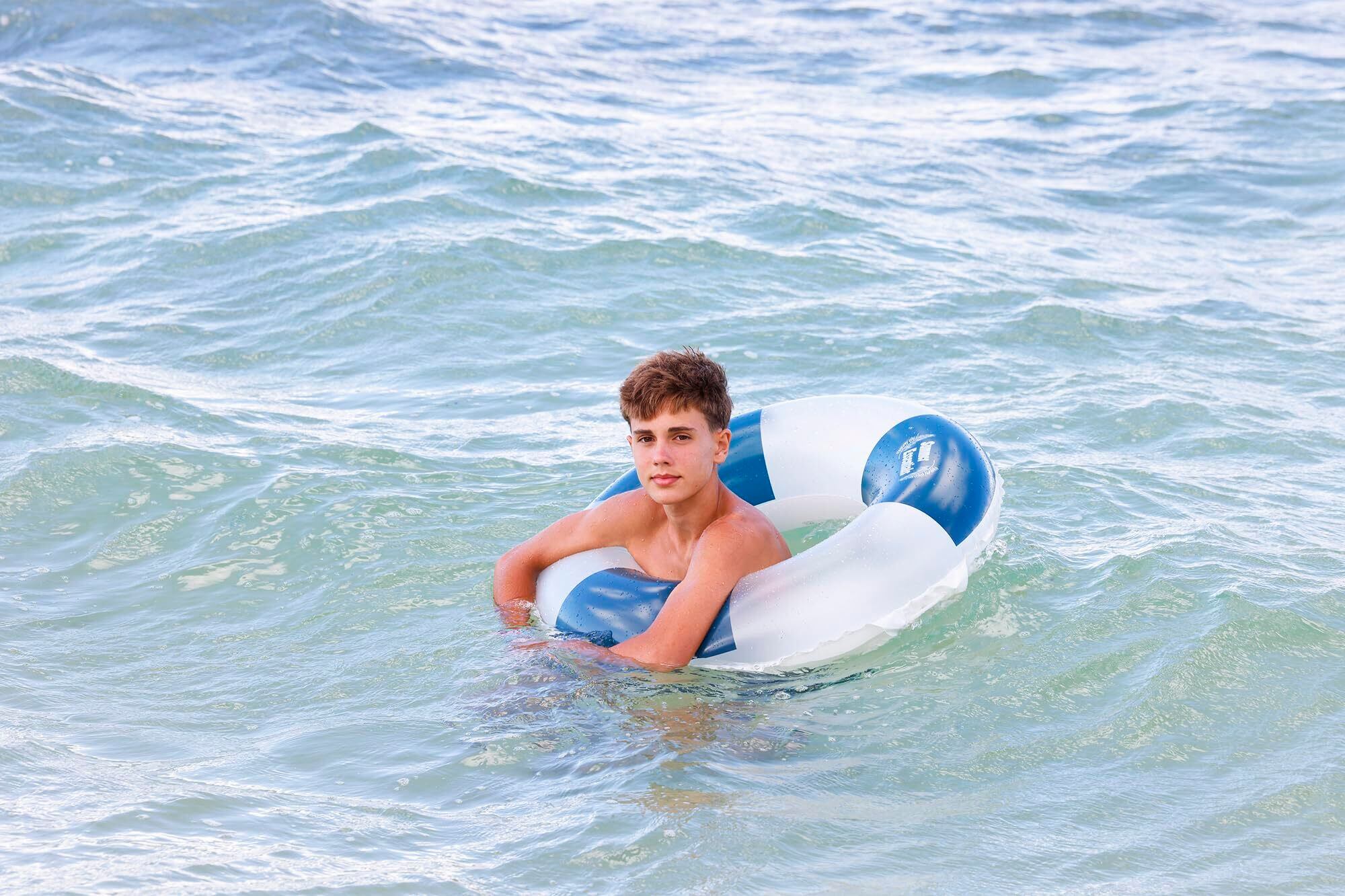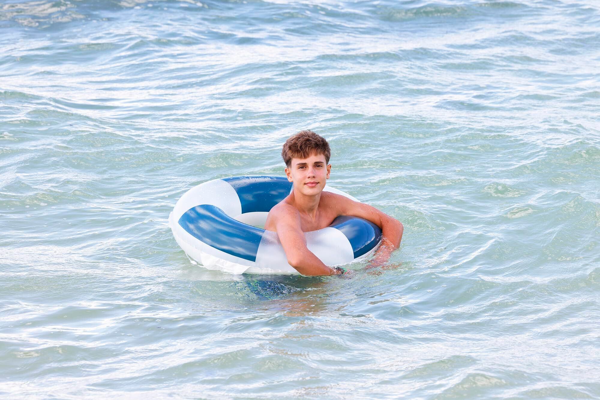 膨らんだ状態の浮輪の内周が約110~115センチの浮輪です。男女問わず大人1人が入れる大きさです。