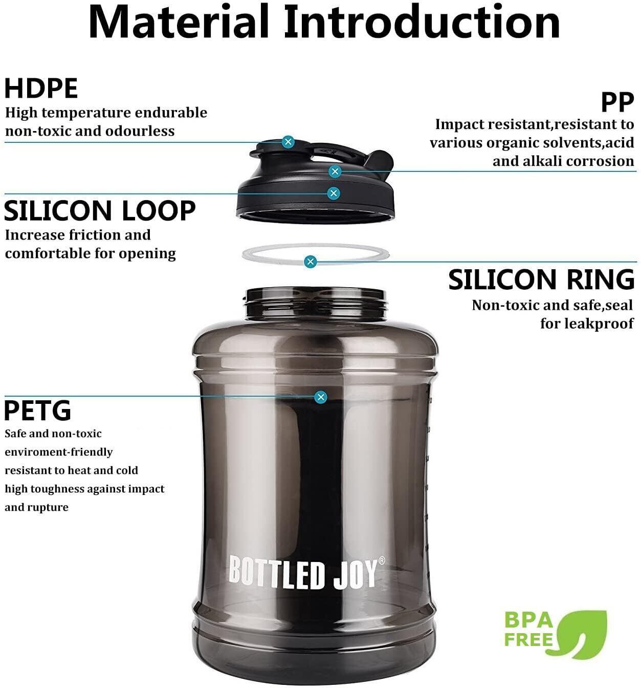 ️【安全で健康的】ハンドル付きの大きなウォーターボトルはPETG製で、高品質、BPA不使用、フタル酸エステル不使用、非毒性、人体に完全に安全です。 食器洗い機使用不可、手洗い推奨。